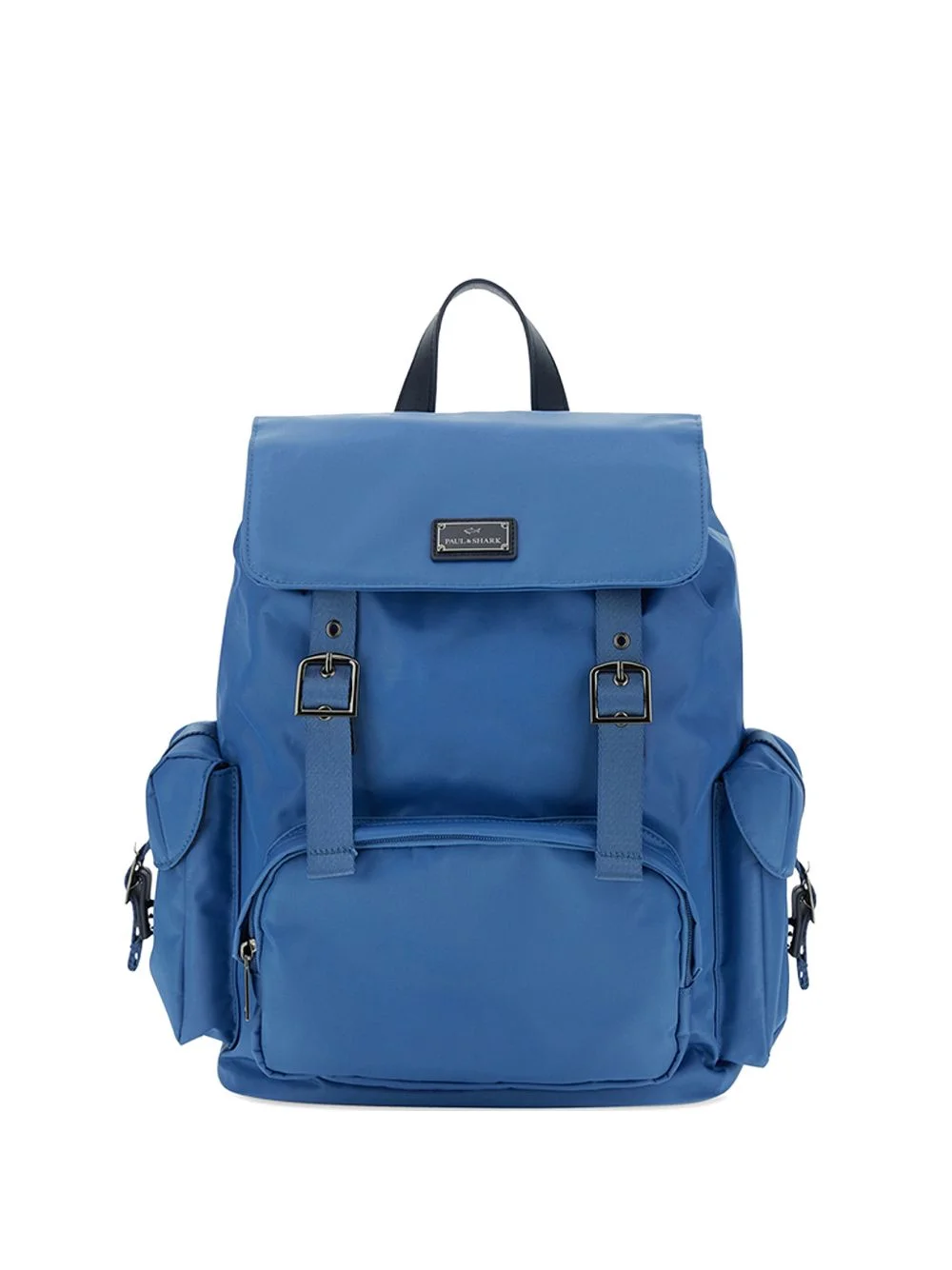 Milano leather-trim backpack Highlights - Blue - Flap top - Buckle fastening - Top handle - Front zip-fastening pocket - Side flap pockets Imported Composition Outer: Nylon 95%, Calf Leather 5% Lining: Polyester 100%
