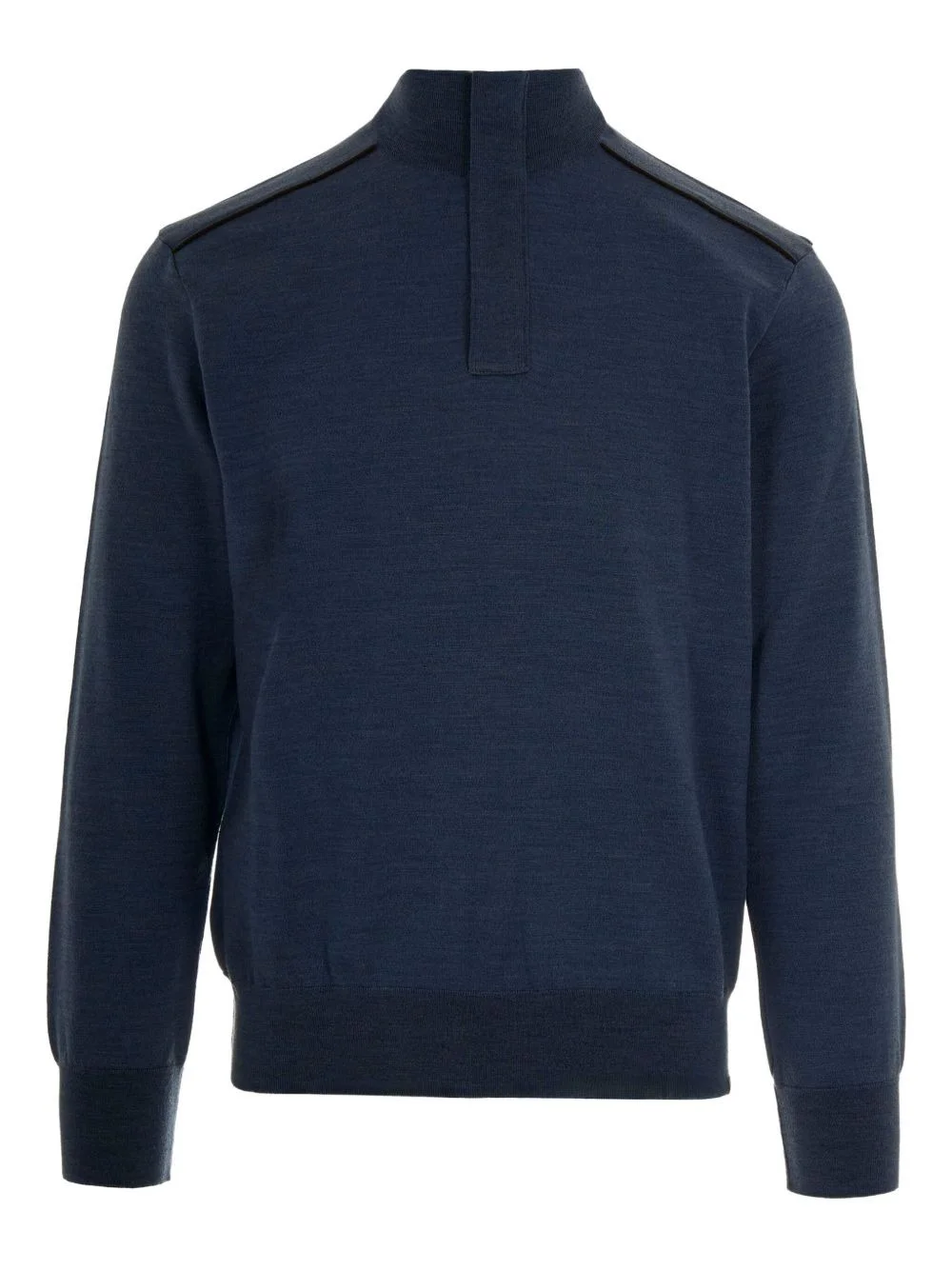 mock-neck wool sweater Highlights - Blue - Ribbed cuffs - Ribbed hem - Long sleeves - Plain knit Imported Composition Virgin Wool 100% Washing instructions Read Manufacturer Guidelines