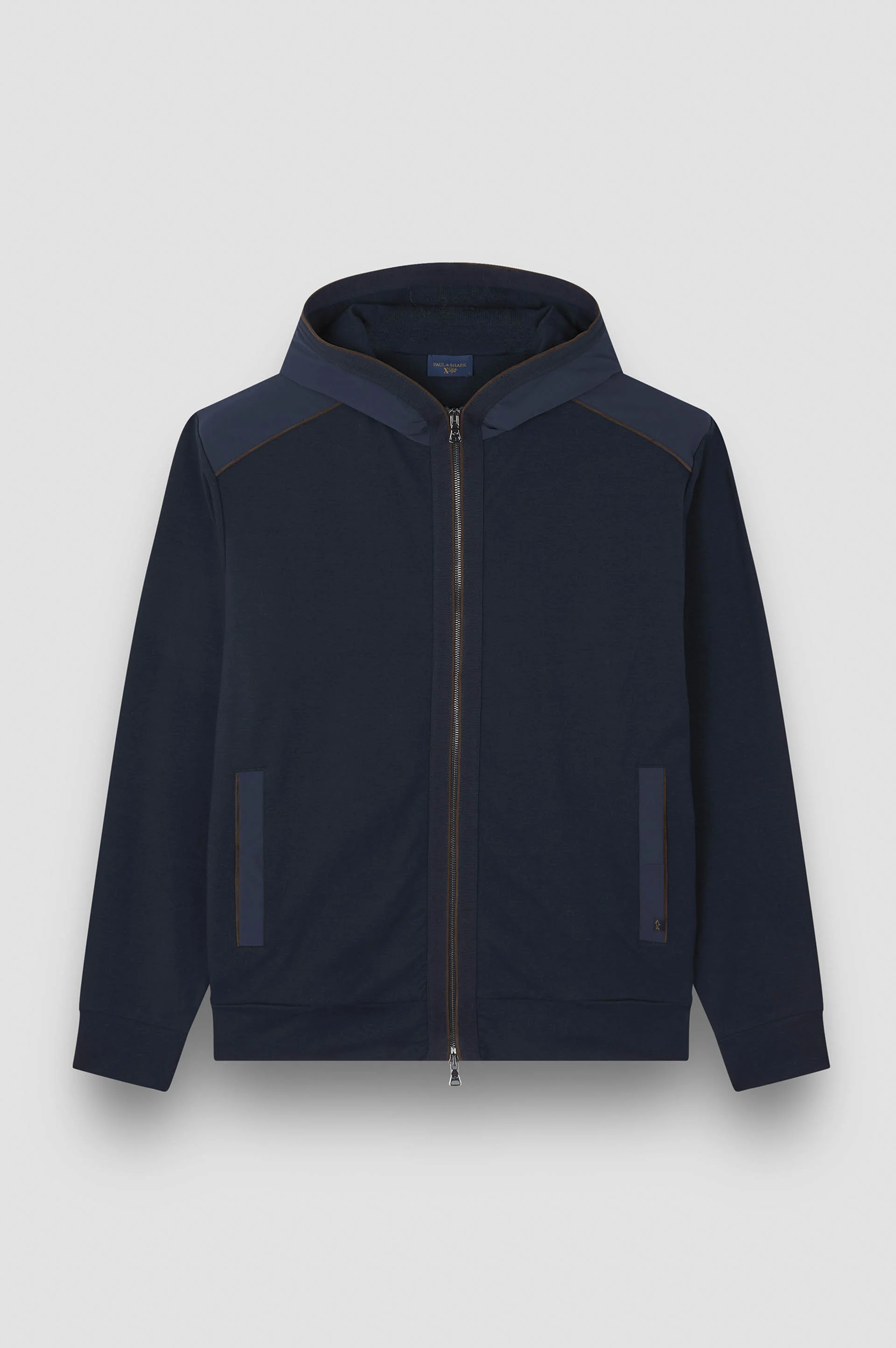 Typhoon Re-4X4 Stretch offers optimal resistance against water and wind, as well as four-way flexibility to naturally mould to your every movement. A sleek silhouette with sophisticated details: this hoodie cements Paul & Shark’s unwavering commitment to delivering exceptional quality. Crafted from cotton with our innovative X-Soft treatment for an even more luxurious feel against the skin, this garment is reinforced with Typhoon Re-4X4 Stretch inserts where you need it most. A two-way zip closure makes it a refined yet practical essential for outdoor activities and layered looks in between seasons. DETAILS Shark label Hood Zip closure Full zip sweatshirt in cotton and lyocell with Typhoon® 4x4 stretch yoke and suede inserts Side pockets Long sleeve Regular Fit Product ID: 15311806 COMPOSITION & CARE Composition: Outer: 46% cotton, 47% lyocell, 7% elastane - Yoke + Inserts: 88% polyester, 12% elastane - Fabric inserts: 79% polyester, 21% polyurethane
