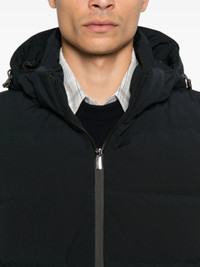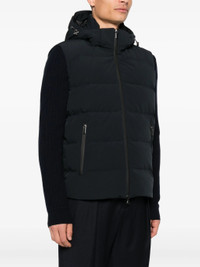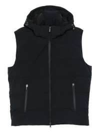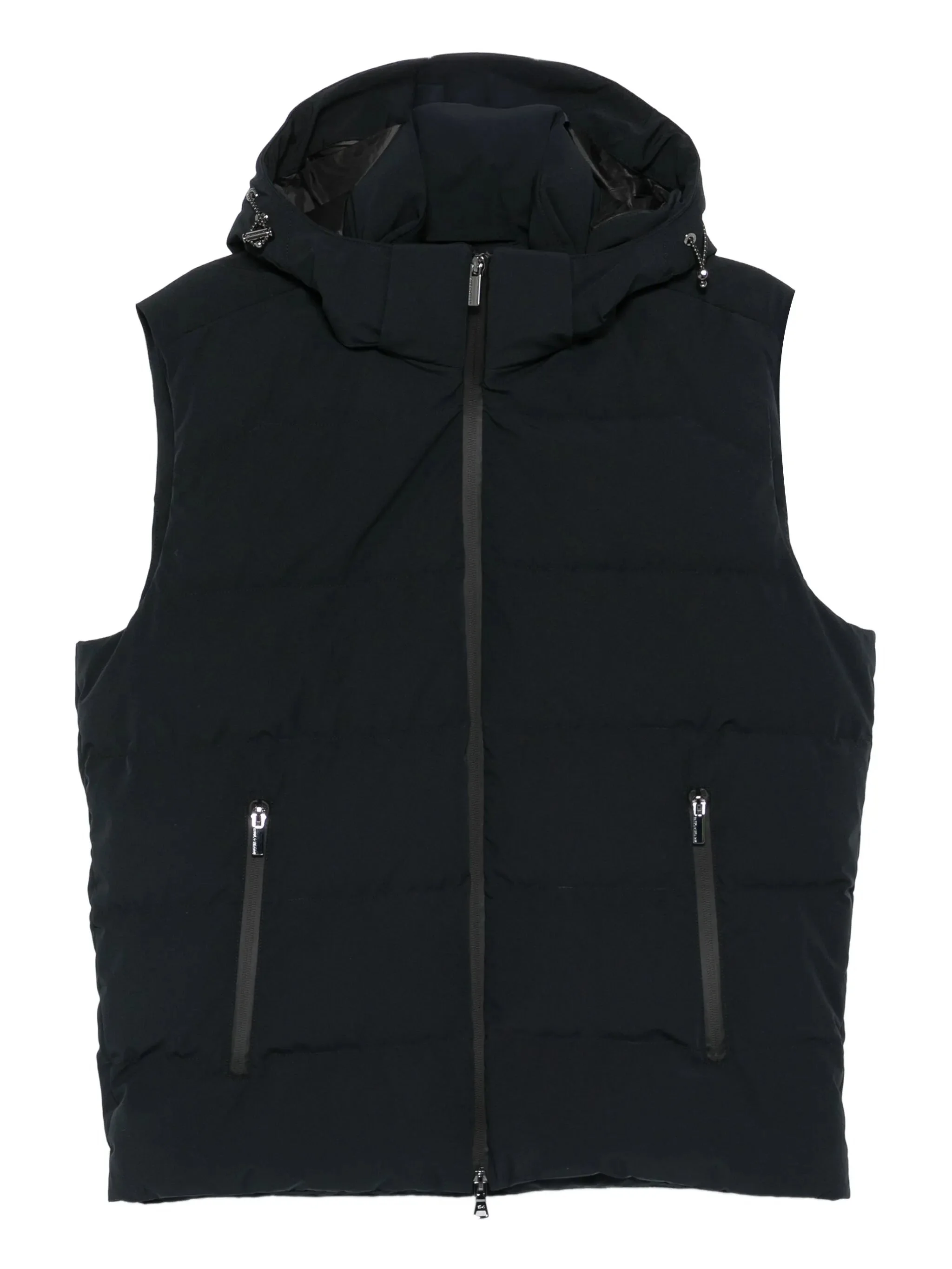 black quilted design zip fastening sleeveless attached hood welt pockets - Color: BLUE - Made in: Tunisia - Designer Style ID: 15312006 011 Composition and care Outer Composition Polyester: 88.0%, Lining Composition Polyester: 100.0%, Lining Composition Feather: 30.0%, Outer Composition Elastane: 12.0%, Lining Composition Down: 70.0%