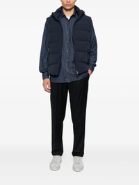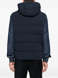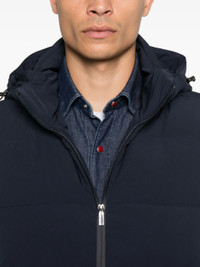 navy blue quilted design zip fastening hooded neckline sleeveless two zip pockets - Color: BLUE - Made in: Tunisia - Designer Style ID: 15312006 013 Composition and care Outer Composition Polyester: 88.0%, Lining Composition Polyester: 100.0%, Lining Composition Feather: 30.0%, Outer Composition Elastane: 12.0%, Lining Composition Down: 70.0%