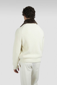 Re-Wool is an innovative and sustainable fabric made from recycled wool, blending craftsmanship with modernity. Its rich texture and hand-embroidered-like surface make it ideal for garments with a refined and conscious design. A responsible choice for collections that stand out for their style and environmental awareness. Snug, cosy and luxuriously soft, this cardigan combines our sartorial heritage with the forward-looking use of innovative fibres. This garment is knitted from Re-Wool: a blend of luxuriously cosy regenerated wool, cementing Paul & Shark’s commitment to circular consumption. Enriched with raglan sleeves and a two-way zip for maximum versatility, it features a detachable faux fur collar to keep you warm and protected on cold days. DETAILS Shark label Two-way zip closure Zip-up sweater in Re-Wool, fineness 5 Ribbed collar cuffs and hem Side pockets English rib knit Long sleeve Regular Fit Product ID: 15311243 COMPOSITION & CARE Composition: Outer: 80% Wool 20% nylon