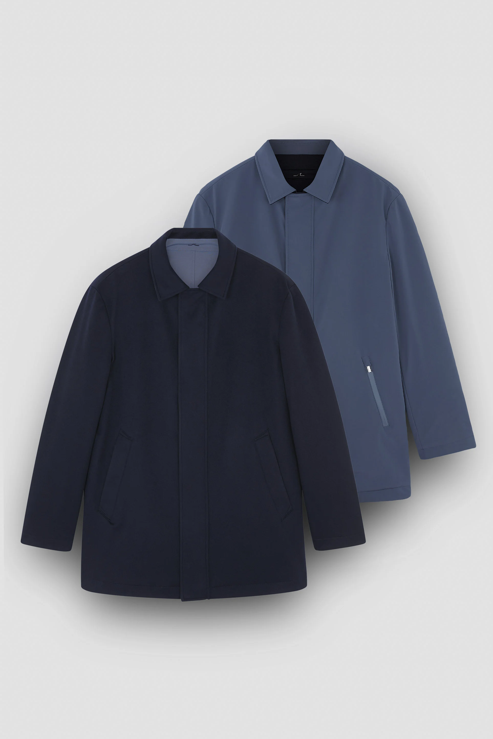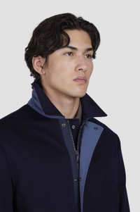 Luxurious materials, refined silhouettes and meticulous attention to detail: the ultimate embodiment of Paul & Shark's effortless elegance. Superior functionality, an appreciation for premium fabrics that feel luxurious against the skin, and a reversible design for double the styling possibilities. This car coat is crafted from cashmere produced in Italy with Loro Piana's Green Storm System®: a Loro Piana registered trademark that makes the fabric waterproof and wind-resistant, without altering the softness or comfort of the natural fibre. The contrast lining showcases the unmatched performance of Typhoon Re-4X4 Stretch, offering optimal resistance against water and wind as well as four-way flexibility to naturally mould to your every movement. DETAILS Metal Shark Fin Reversible design Shirt collar Two-way zip and press stud closure Reversible carcoat with one side in cashmere Green Storm System® Made in Italy by Loro Piana® with welt pocket with snap buttons and one side in Typhoon® with zippered pockets Regular Fit Product ID: 15312424 COMPOSITION & CARE Composition: Exterior: 100% cashmere - Interior: 88% polyester 12% elastane - Padding: 100% polyester