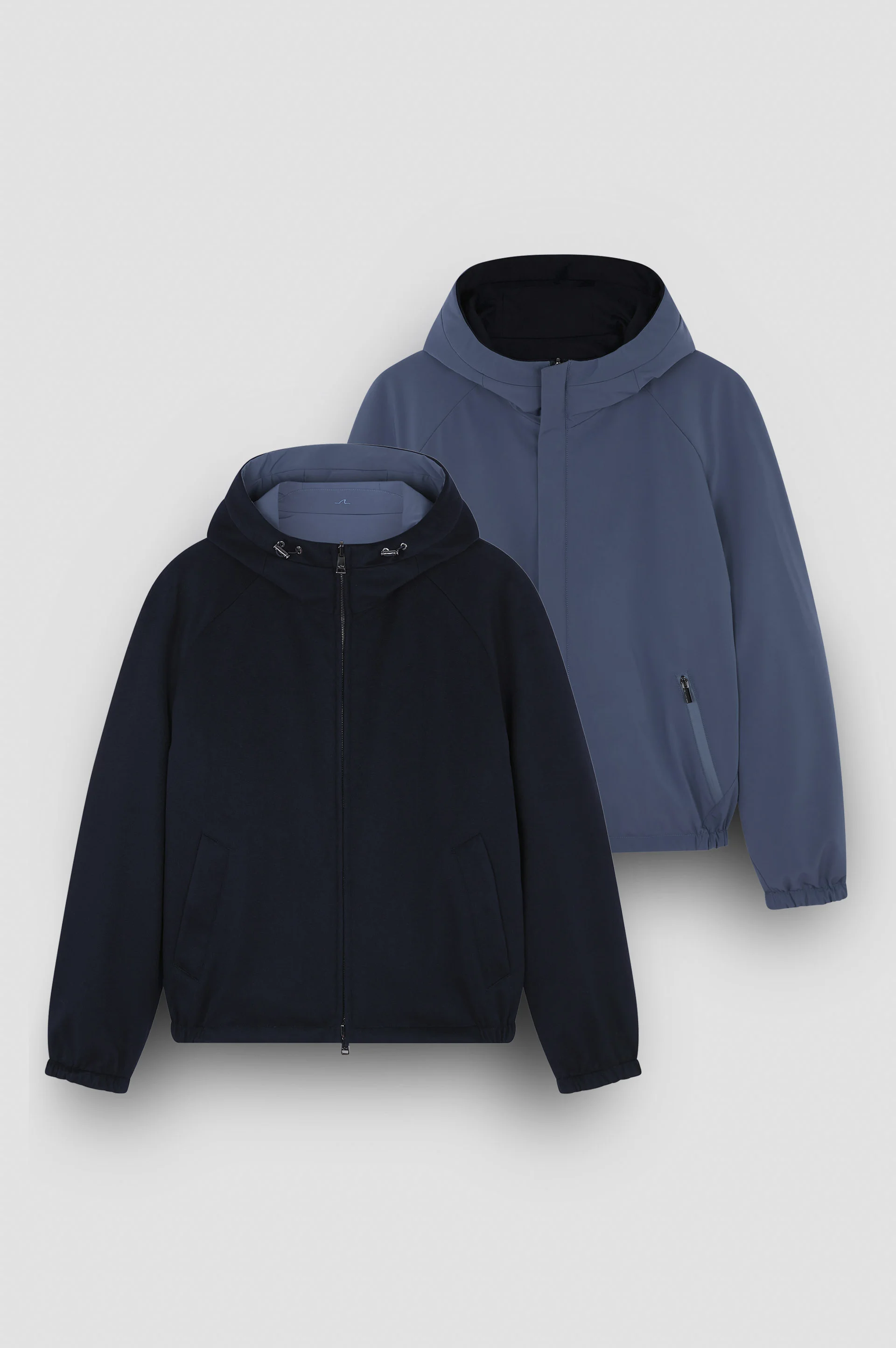 Luxurious materials, refined silhouettes and meticulous attention to detail: the ultimate embodiment of Paul & Shark's effortless elegance. Paul & Shark reinterprets the casual jacket with refined materials and a reversible design for double the styling possibilities. This style is crafted from cashmere produced in Italy with Loro Piana's Green Storm System®: a Loro Piana registered trademark that makes the fabric waterproof and wind-resistant, without altering the softness or comfort of the natural fibre. The contrast lining showcases the unmatched performance of Typhoon Re-4X4 Stretch, offering optimal resistance against water and wind as well as four-way flexibility to naturally mould to your every movement. DETAILS Metal Shark Fin Reversible design Adjustable hood with drawstring Two-way zip closure Jacket in cashmere Green Storm System® Made in Italy by Loro Piana® and Typhoon® On the cashmere side, it has pockets with snap buttons; on the Typhoon® side, it has pockets with zippers Regular Fit Product ID: 15312426 COMPOSITION & CARE Composition: Outer: 100% cashmere - Inner: 88% polyester 12% elastane - Filling: 100% polyester