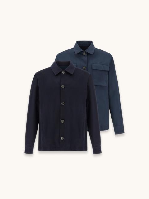 Luxurious materials, refined silhouettes and meticulous attention to detail: the ultimate embodiment of Paul & Shark's effortless elegance. An expression of Paul & Shark’s highest elegance, this reversible overshirt combines technical fabric and cashmere, produced in Italy using Loro Piana’s Rain System®: a Loro Piana registered trademark that makes the fabric waterproof and wind-resistant. The essential design is enhanced by meticulous attention to detail, from side pockets with buttons to the two flap pockets on the chest, defining the character of the piece with discretion and functionality. A contemporary interpretation of quiet luxury, designed for a timeless wardrobe. DETAILS Metal Shark Fin Button closure Overshirt crafted from Rain System® cashmere Made in Italy by Loro Piana and technical fabric Cashmere section with two pockets with snap-button closure and two front flap pockets on the technical side Relaxed Fit The model is 188 cm tall and wears size L Product ID: 26412305 COMPOSITION & CARE Composition: Outside: 100% cashmere - Inside: 100% polyester
