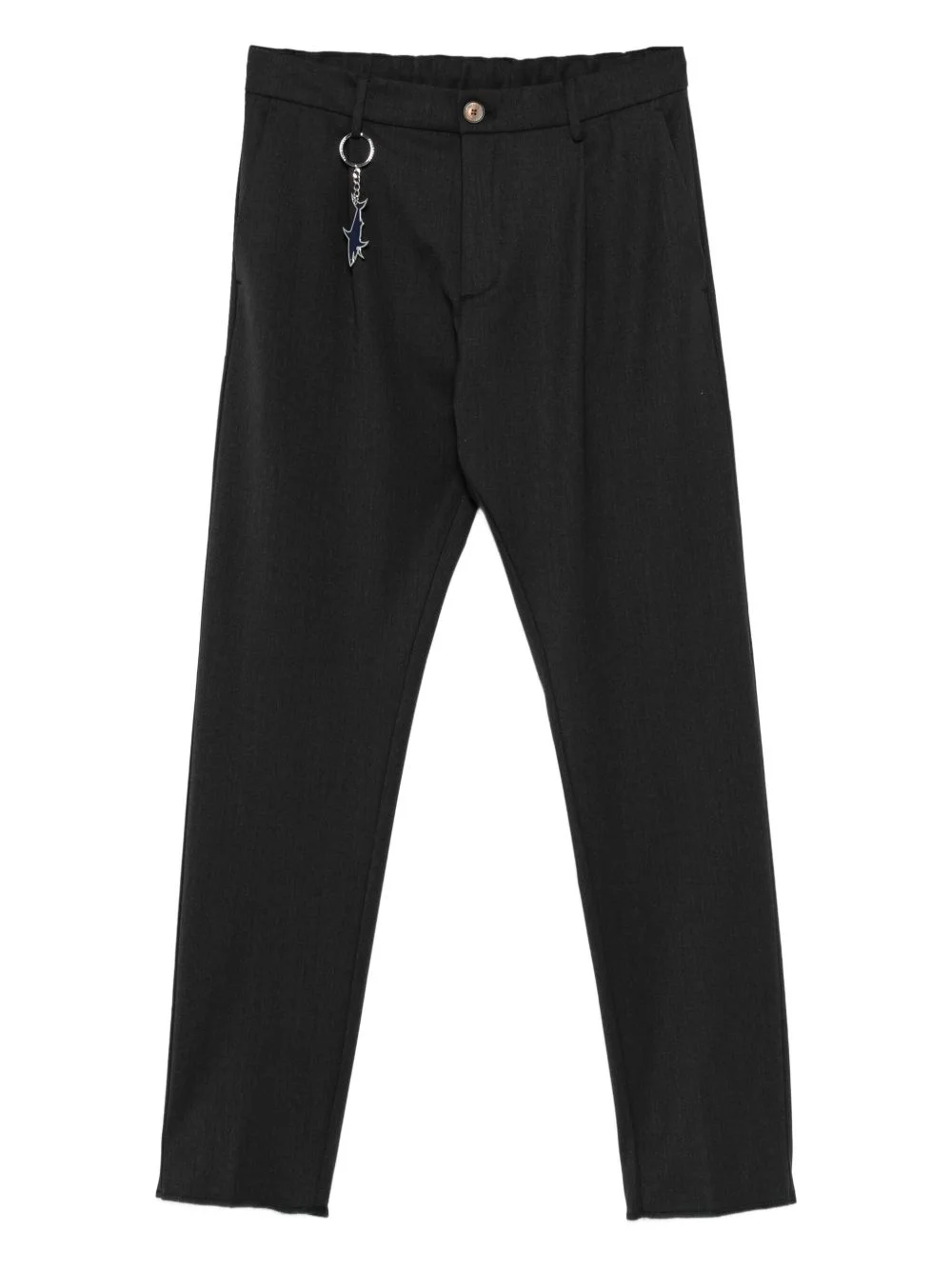 shark-keychain pleated trousers Highlights - Black - Pinstripe pattern - Pleated front - Elasticated waistband - Shark keychain detail Made in Italy Composition Virgin Wool 76%, Nylon 22%, Elastane 2% Washing instructions Read Manufacturer Guidelines