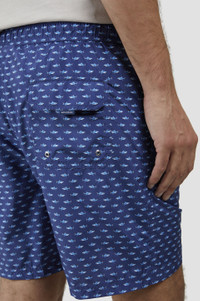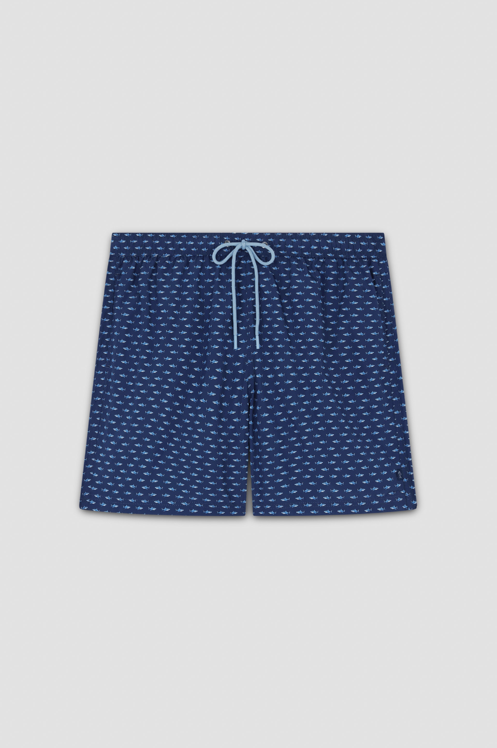 Crafted using low-impact fabrics and processes, the Save the Sea line showcases Paul & Shark’s commitment to protecting the planet. These volley swim shorts flaunt an all-over shark print, reworking Paul & Shark’s iconic codes with a playful edge. Made from ultra-light, quick-dry fabric, their elegant narrow-leg silhouette is fitted with inner mesh briefs for maximum comfort. An elasticated drawstring waist ensures a flawless fit, whilst handy pockets keep small essentials close by. DETAILS Swimming costume in Ultralight & Fast Dry Fabric with Drawstring Side pockets and back pocket with velcro Regular Fit Product ID: 25415048 COMPOSITION & CARE Composition: Outside: 100% polyester - Lining: 100% polyester