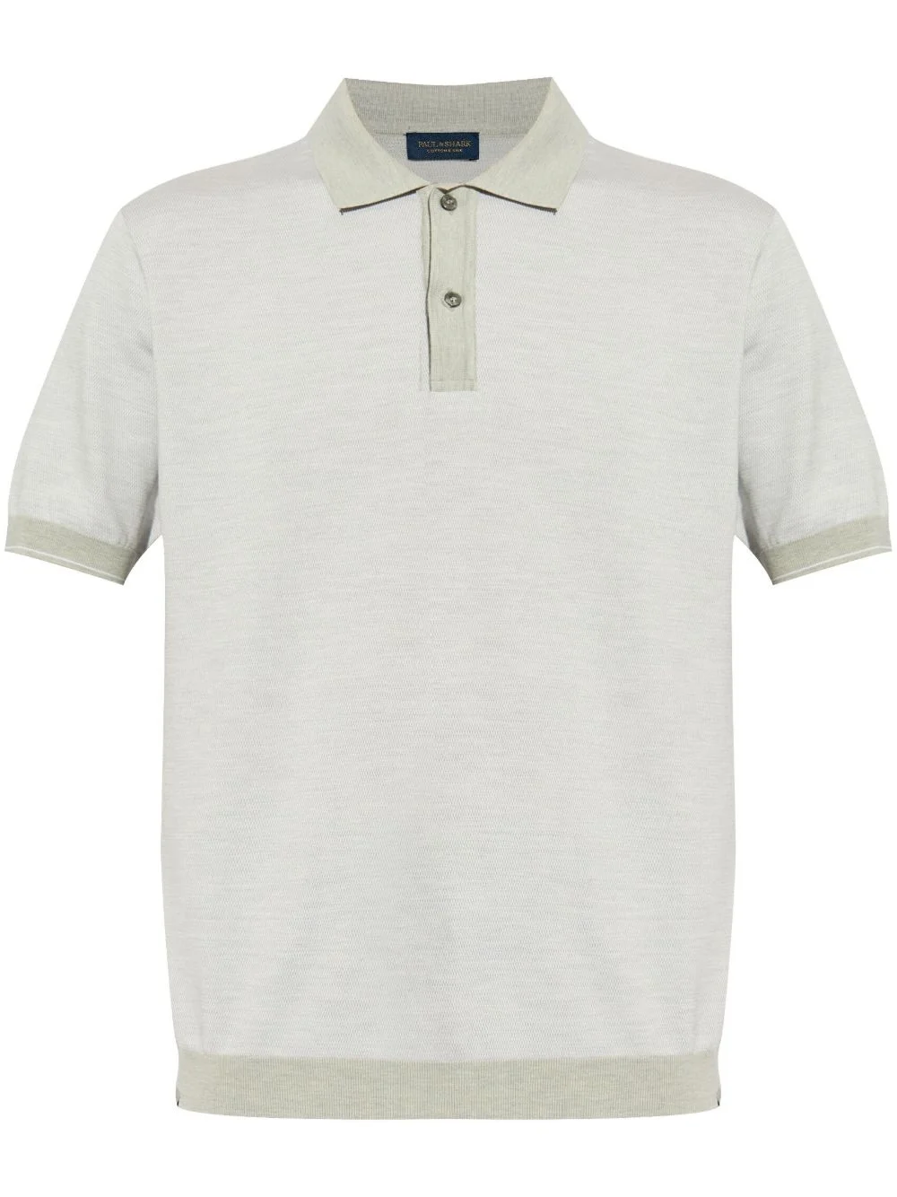 silk-blend polo shirt Highlights - Light grey - Front button placket - Contrasting trim - Polo collar - Short sleeves Imported Composition Cotton 69%, Silk 31%