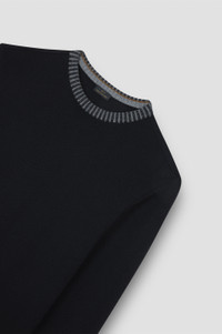 Discover Soft Cool Touch: an innovative finish that results in a fabric that's water-repellent, compact and flexible. A menswear classic with a graphic twist. This jumper is knitted from soft wool and treated with Soft Cool Touch technology: the yarn is cold-pressed to create a super-compact yet flexible texture that’s resistant to pilling and makes water slide right off the surface. The result? Functional elegance you’ll want to wear again and again with endless outfits. Contrast ribbed trims add a bold touch. DETAILS Shark label Soft Cool Touch wool crew neck sweater, gauge 8 Ribbed collar, cuffs and flounce Stocking stitch Long sleeve Regular Fit Product ID: 15311010 COMPOSITION & CARE Composition: 100% virgin wool