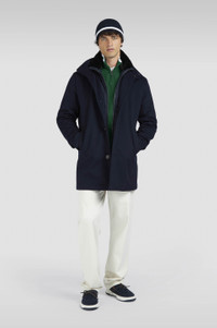 RE-CODED translates the charm of Paul & Shark’s historic archive into a range of timeless, sophisticated looks. Featuring an intarsia design in the colours of the ocean, this jumper rewrites the authentic essence of Paul & Shark to bring a luxurious touch to your everyday rotation. Its cosy silhouette is snug while offering maximum freedom of movement, knitted from supple wool and treated with Soft Cool Touch technology: the yarn is cold-pressed to create a super-compact yet flexible texture that’s resistant to pilling and makes water slide right off the surface. The ribbed trims are detailed with an elegant contrast edge, while the half-zip closure makes it perfect for throwing over collared shirts for effortlessly refined layered looks. DETAILS Shark label Zip closure Soft Cool Touch wool half-zip sweater fineness 8 Ribbed collar, cuffs and flounce Stocking stitch Long sleeve Regular Fit Product ID: 15311145 COMPOSITION & CARE Composition: 100% virgin wool