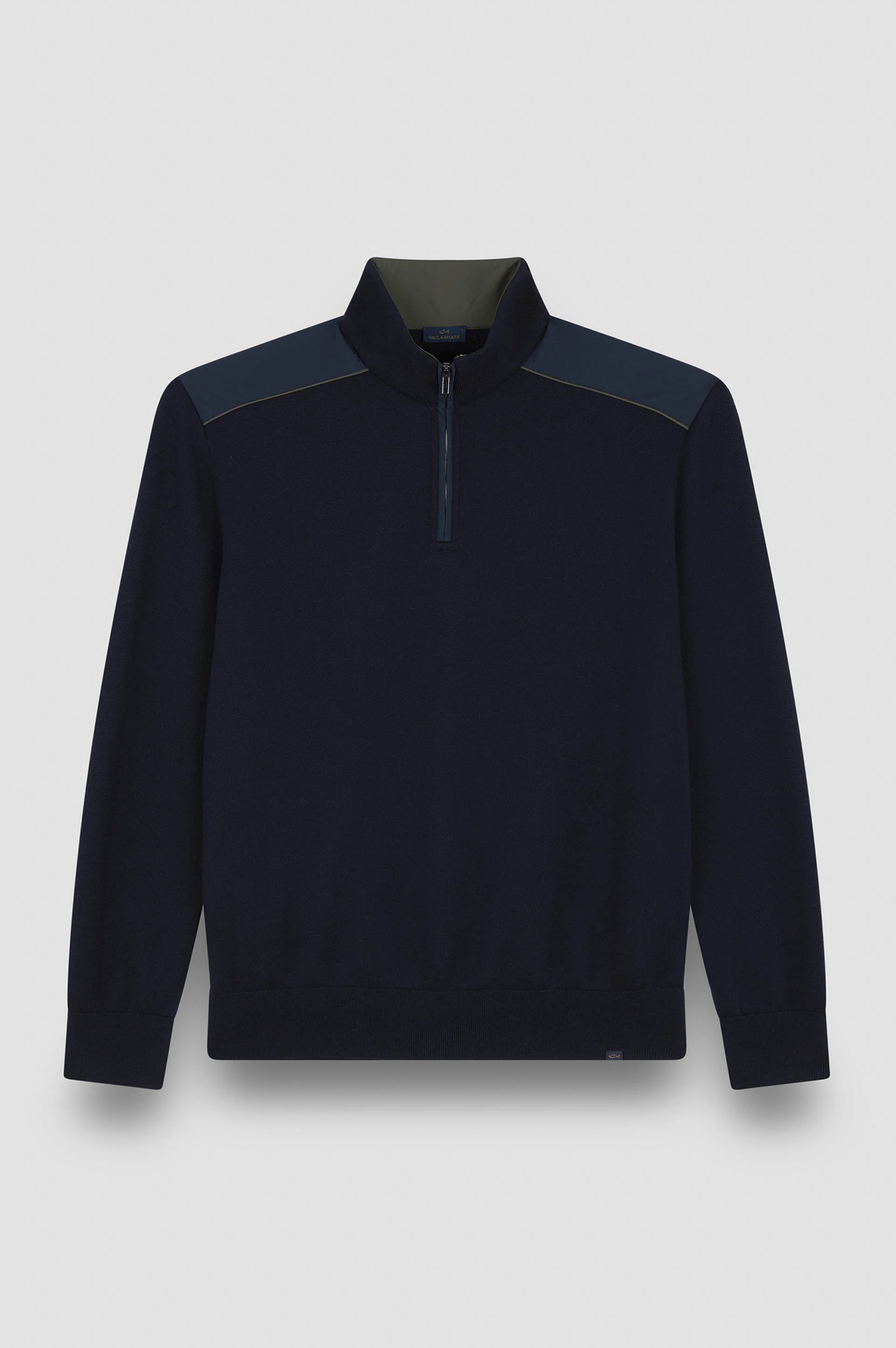 Reserved for our most refined pieces, Typhoon Platinum combines watertightness, breathability and wind resistance with an ultra-luxurious texture. This jumper is knitted from wool and treated with Soft Cool Touch technology: the yarn is cold-pressed to create a super-compact yet flexible texture that’s resistant to pilling and makes water slide right off the surface. Typhoon Platinum details add a unique touch: a high-performance fabric with an ultra-luxurious tactile feel. Perfect over a shirt or T-shirt, it boasts a timeless design with a high neck, half zip and ribbed trims for a well-defined silhouette. DETAILS Shark label Zip closure Soft Cool Touch wool half-zip sweater fineness 12 with Typhoon® Platinum details Ribbed collar, cuffs and flounce Knitted jersey Long sleeve Regular Fit Product ID: 15311131 COMPOSITION & CARE Composition: Outer: 100% Virgin Wool - Inserts: 100% Polyester