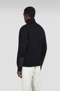 Reserved for our most refined pieces, Typhoon Platinum combines watertightness, breathability and wind resistance with an ultra-luxurious texture. This cardigan is knitted from wool and treated with Soft Cool Touch technology: the yarn is cold-pressed to create a super-compact yet flexible texture that’s resistant to pilling and makes water slide right off the surface. Typhoon Platinum details add a unique touch: a high-performance fabric with an ultra-luxurious tactile feel. The result? Functional elegance you’ll want to wear again and again for endless occasions. DETAILS Shark label Two-way zip closure Soft Cool Touch wool zip-up sweater fineness 12 with Typhoon® Platinum details Ribbed collar cuffs and hem Zipped pockets Knitted jersey Long sleeve Regular Fit Product ID: 15311236 COMPOSITION & CARE Composition: Outer: 100% Virgin Wool - Inserts: 100% Polyester