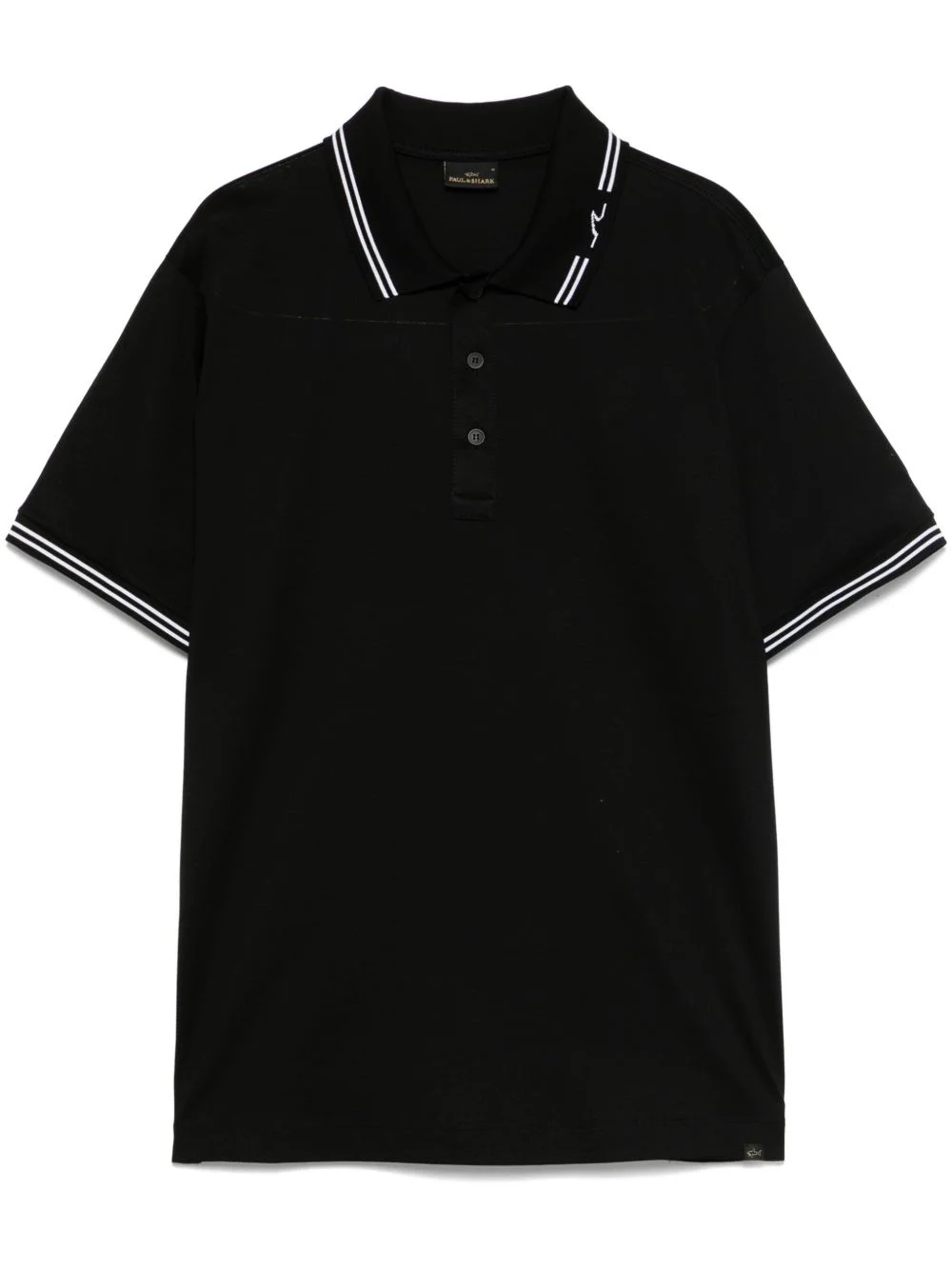 stripe-trim polo shirt Highlights - Black - Front button placket - Polo collar - Short side slits - Mini logo tag Made in Italy Composition Cotton 100%