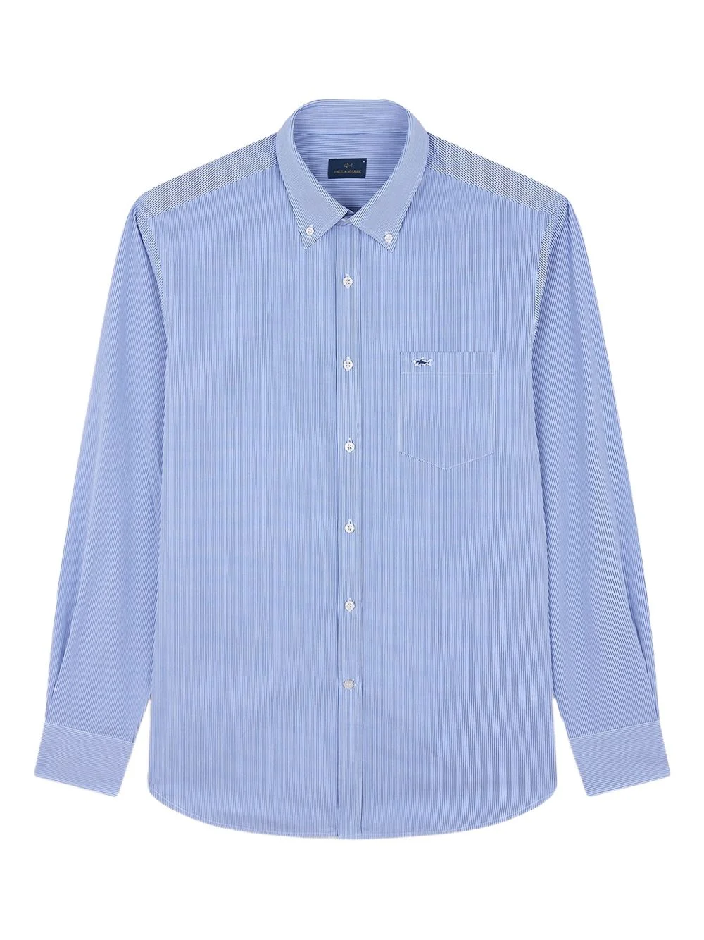 striped cotton poplin shirt Highlights - White/light blue - Striped pattern - Chest pocket - Button fastening - Long sleeves - Buttoned cuffs Imported Composition Cotton 100% Washing instructions Machine Wash