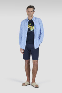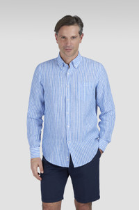 Our J-Fit shirts flaunt a straight cut for a flattering look without restriction. A breezy striped shirt is a summer wardrobe classic, reinterpreted by Paul & Shark with exceptional materials and meticulous attention to detail. This style is crafted from pure linen that’s been specially treated to achieve an even softer, more breathable feel against the skin. Featuring a button-down collar, it’s styled with a straight cut and rounded hem for an elegant fit, embellished with an embroidered Paul & Shark logo on the cuff for a luxurious touch. DETAILS Button closure Washing with softener Linen shirt Chest pocket Long sleeve J-Fit Product ID: 25413008 COMPOSITION & CARE Composition: Outside: 100% linen