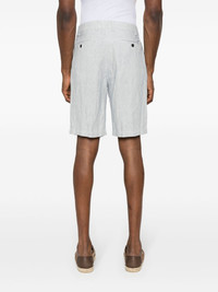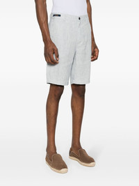 striped linen shorts Highlights - Blue/white - Linen/flax - Slub texture - Vertical stripe pattern - Embroidered logo to the rear - Belt loops - Two diagonal pockets to the sides - Two rear button-fastening jetted pockets - Front button and zip fastening Imported Composition Linen/Flax 100% SIZE & FIT Model measurements Height 6 ft 2 in(1.89 m) Bust/Chest 39.76 in(101 cm) Hips 37.4 in(95 cm) Waist 29.92 in(76 cm) FittingInformation Designed for a straight-leg fit, offering an unrestricted and comfortable fit over the leg Made from a midweight non-stretch fabric This piece fits true to size – take your usual size