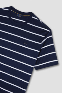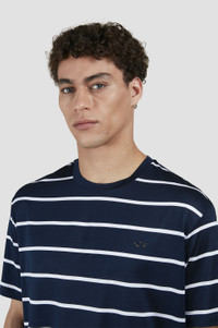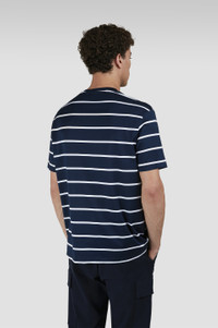This Breton striped T-shirt embodies the marine heritage of Paul & Shark, constantly evolving to suit modern tastes. Its timeless, laid-back silhouette features a crew neck, short sleeves and our signature metal shark on the chest for a distinctive touch. Crafted from double-faced mercerised cotton jersey that feels naturally lightweight and ultra-breathable against the skin. DETAILS Metal Shark T-shirt in double mercerised cotton jersey Jersey knit Short sleeve Regular Fit Product ID: 25411018 COMPOSITION & CARE Composition: Outside: 100% Cotton