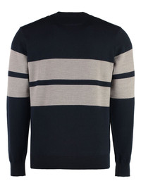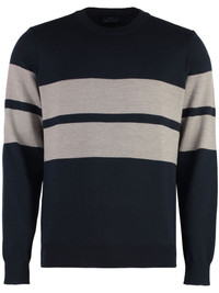 striped wool sweater Highlights - Navy blue/taupe grey - Virgin wool - Knitted construction - Horizontal stripe pattern - Crwe neck - Long sleeves - Ribbed cuffs and hem Imported Composition Virgin Wool 100%