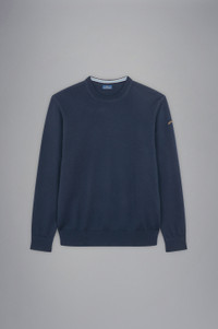 DETAILS Moon badge Crewneck sweater in gauge 14 wool with stiching bold Ribbed collar, cuffs and flounce Interior striped pattern on the neck Knitted jersey Product ID: 14311013 COMPOSITION & CARE Composition: 100% Virgin Wool