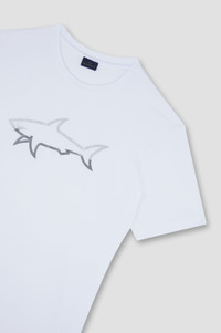Perfect for outdoor adventures and relaxed weekend looks, this T-shirt is crafted from soft, exceptionally breathable pure cotton jersey. Its classic silhouette with crew neck and short sleeves flexes to your every move with effortless elegance. Our iconic shark logo is printed on the front with a reflective finish that lights up in the dark. DETAILS Extra-durable cotton T-shirt with reflective Shark print Graphic print Jersey knit Short sleeve Regular Fit Product ID: 25411078 COMPOSITION & CARE Composition: Outside: 100% Cotton