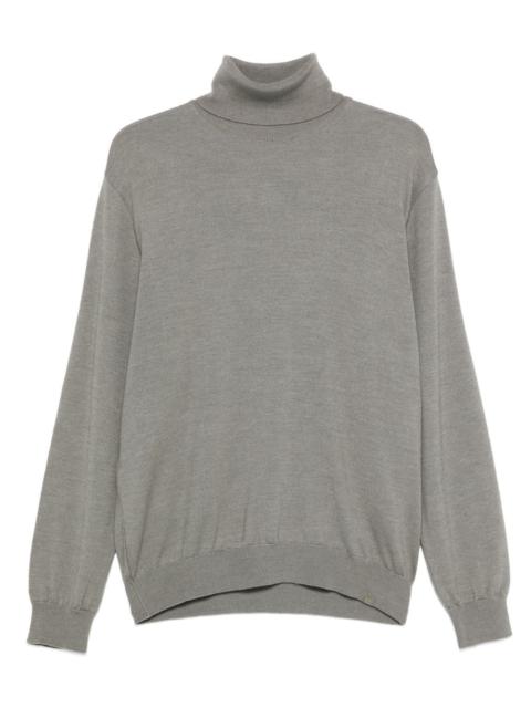 turtleneck wool sweater Highlights - Grey - Turtleneck neck - Long sleeves - Ribbed cuffs - Ribbed hem - Wool-silk material Made in Italy Composition Virgin Wool 70%, Silk 30% Washing instructions Read Manufacturer Guidelines