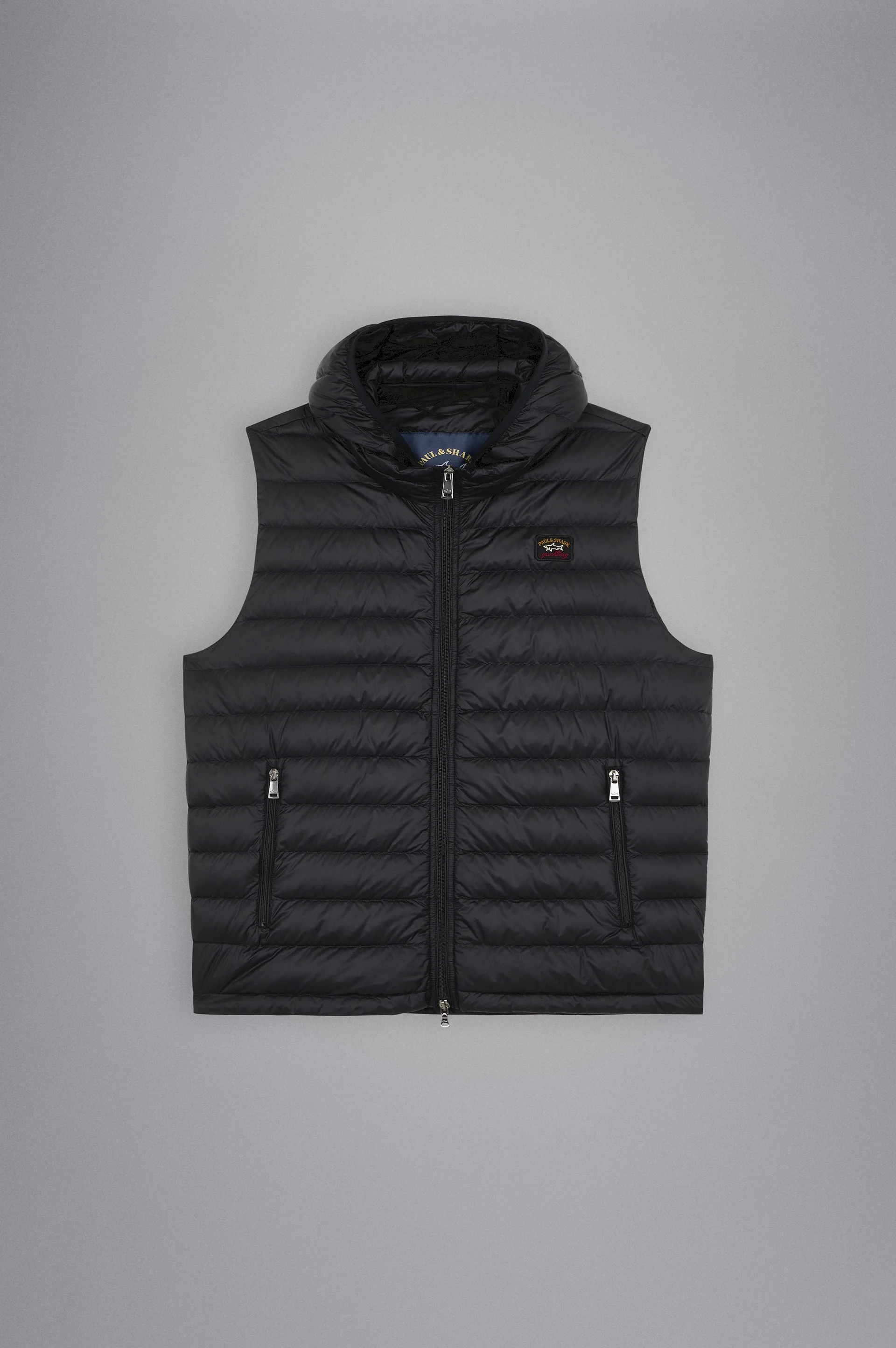 DETAILS Paul&Shark Heritage badge Detachable hood Zip fastening with double slider Ultralight down vest with detachable hood Zipped pockets Regular fit Product ID: C0P2007 COMPOSITION & CARE Composition: External: 100% Nylon - Lining: 100% Nylon - Fill: 96% Down 4% natural feathers