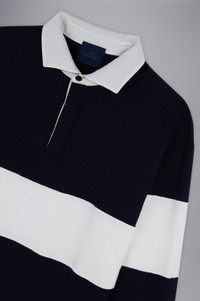 DETAILS Button closure Winter fleece cotton Polo shirt dropped shoulder Polo collar and contrasting closure Side splits Striped pattern Fleece fabric Logo embroidery, tone-on-tone Shark embroidery on center front and rear Fin embroidery Product ID: 14311859 COMPOSITION & CARE Composition: 100% Cotton