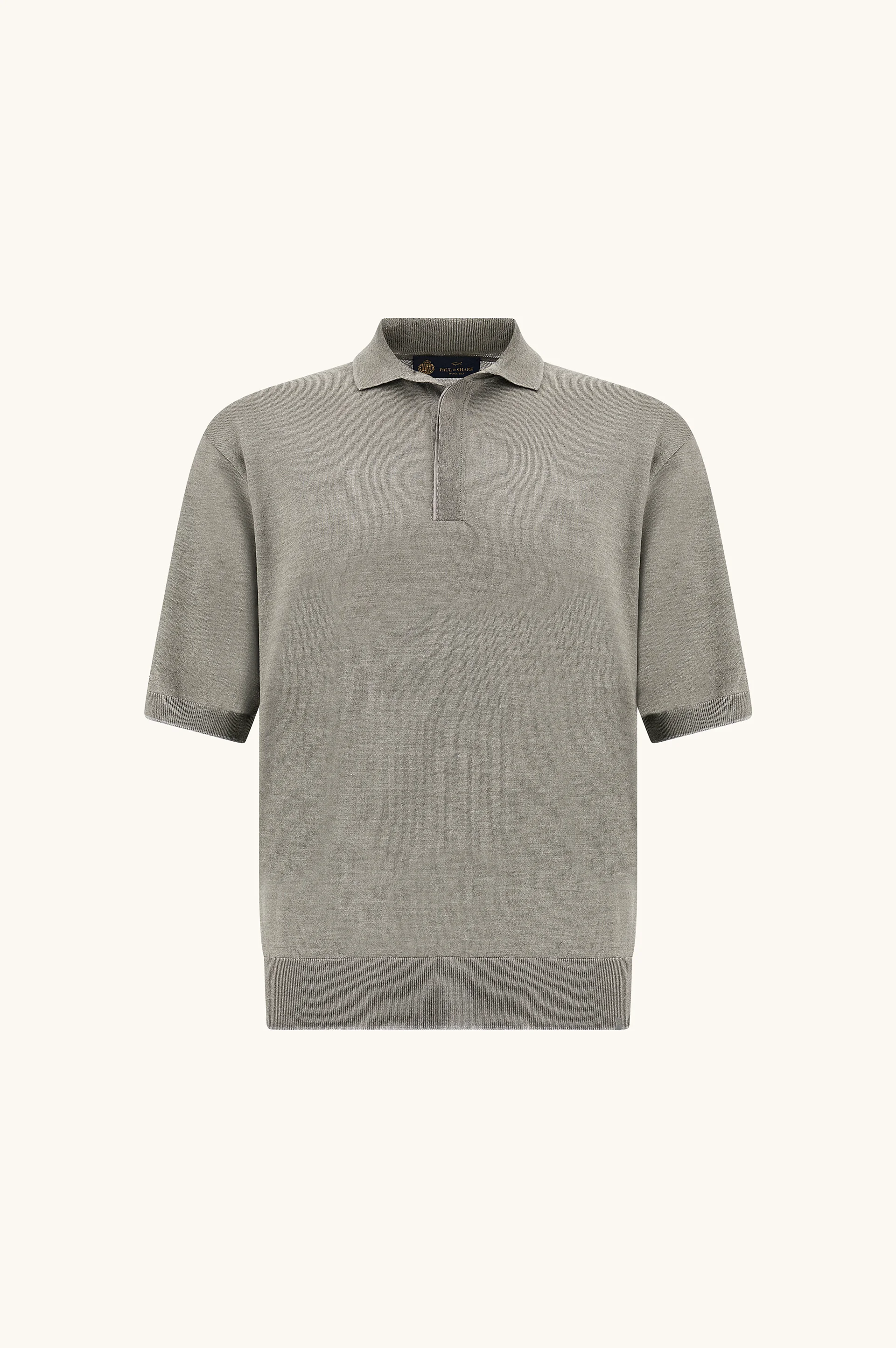 DETAILS Shark label Button closure Fine 18-gauge wool and silk knit polo Ribbed collar, cuffs and flounce Stocking stitch Short sleeve Regular Fit Product ID: 26411653 COMPOSITION & CARE Composition: 70% virgin wool 30% silk