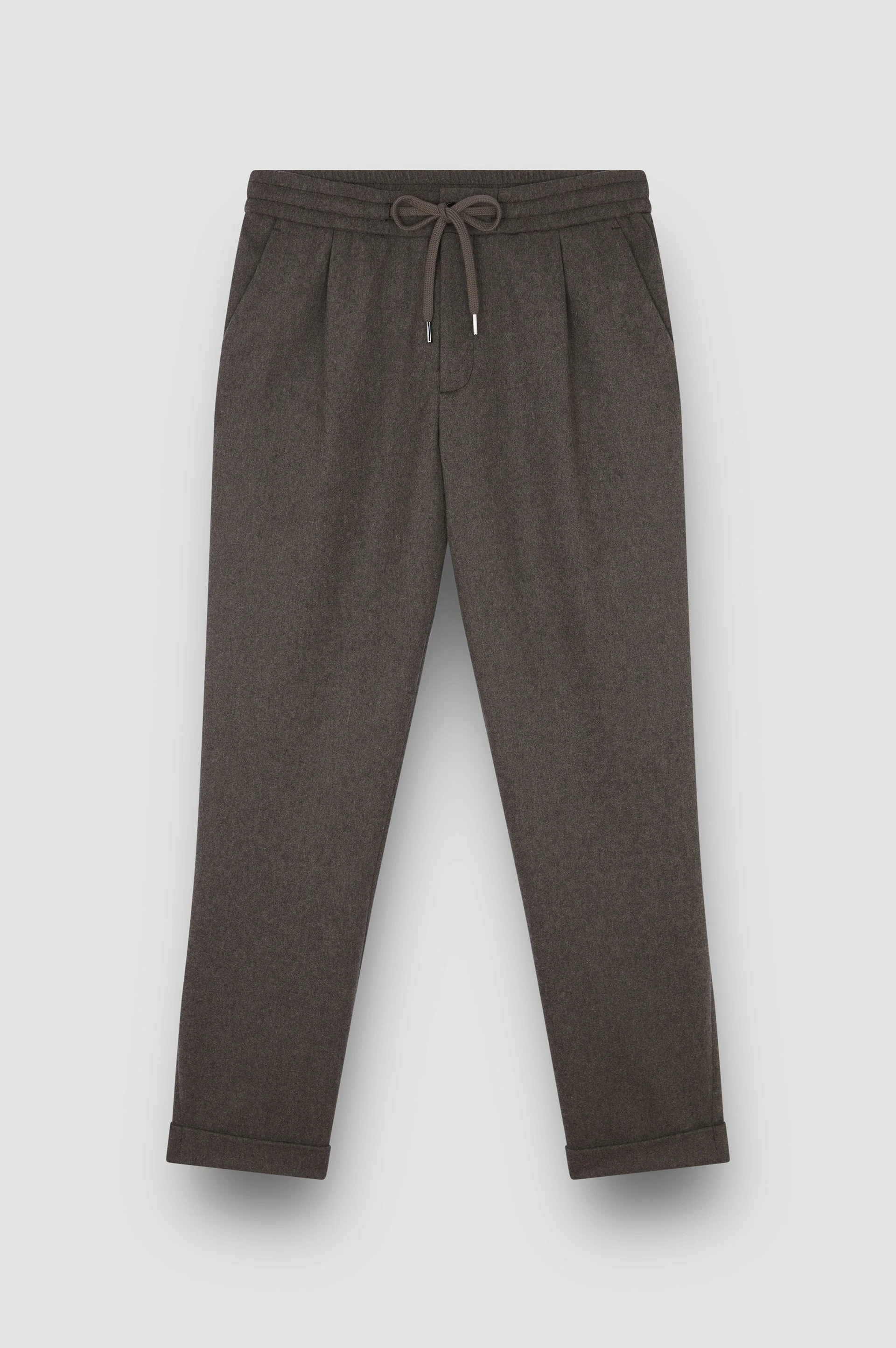 A luxurious update for your off-duty rotation, these trousers unite functional design with refined materials. Made from a luxuriously soft wool blend, they boast a relaxed fit with elegant darts and a drawstring waist that moulds seamlessly to your every movement. Slant pockets on the hips and invisible zip pockets on the back keep small essentials safe and handy. DETAILS Metal Shark Fin Zip and button closure Wool blend trousers with internal drawstring and elastic insert at the waist Zipped pockets Relaxed Fit Product ID: 15314077 COMPOSITION & CARE Composition: Outer: 60% wool 35% polyester 5% nylon - Lining: 55% polyester 45% viscose - Pocket lining: 100% polyester