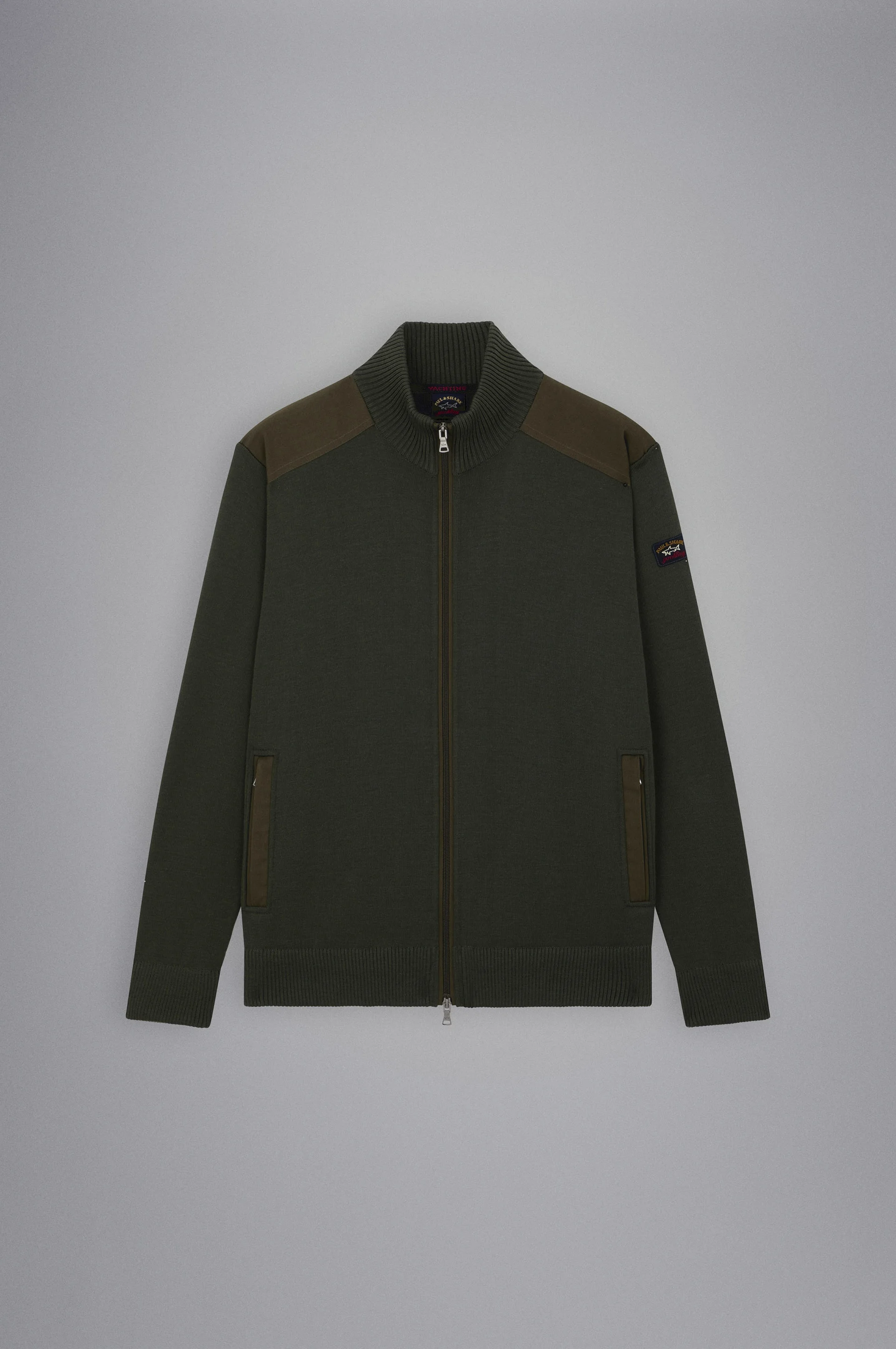 DETAILS Cardigan with zip and double slider Technical fabric inserts Wool Full zip sweater with iconic badge Long sleeves Regular fit Product ID: C0P1029 COMPOSITION & CARE Composition: 50% Wool 50% Acrylic