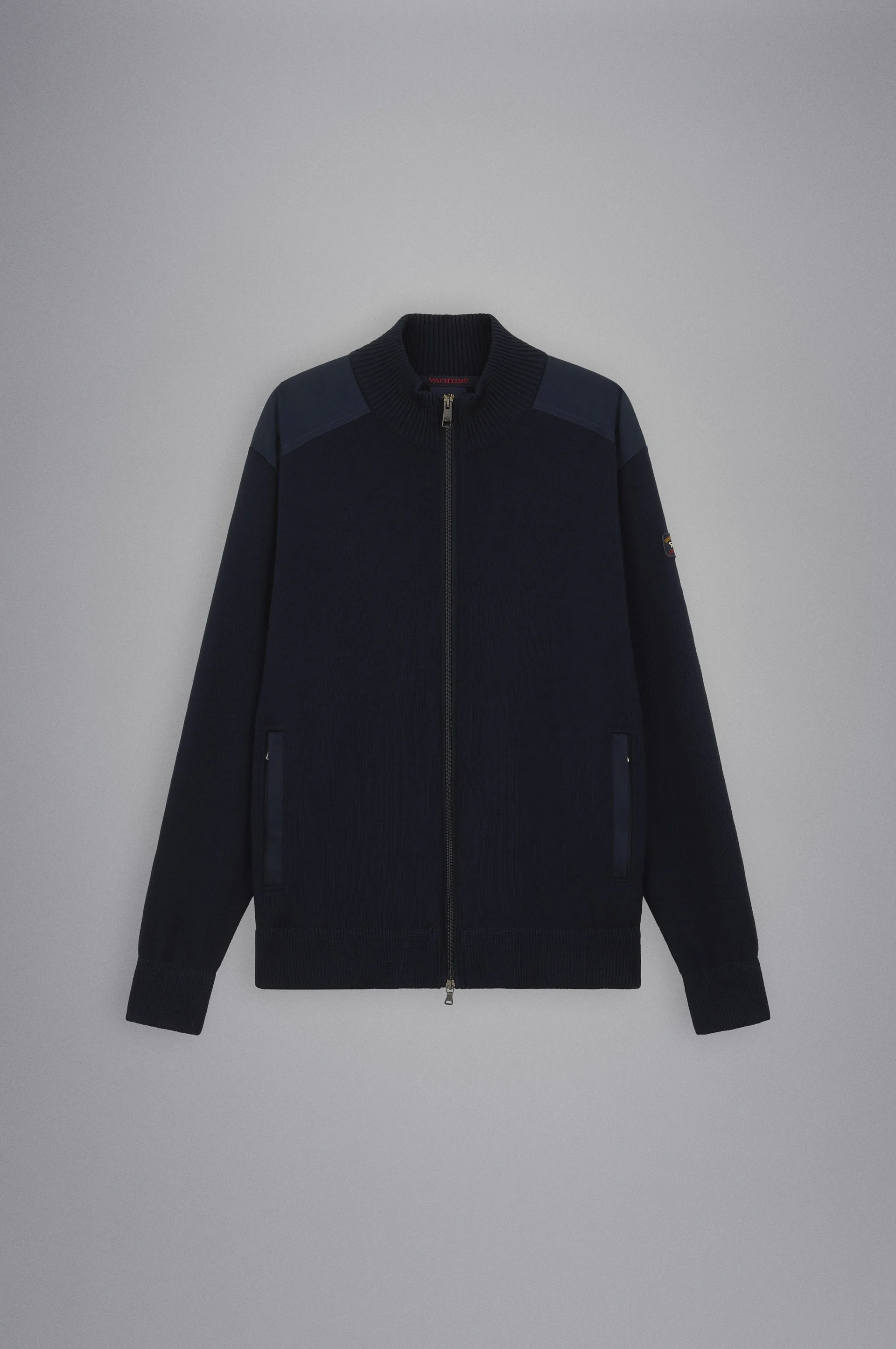 DETAILS Cardigan with zip and double slider Technical fabric inserts Wool Full zip sweater with iconic badge Long sleeves Regular fit Product ID: C0P1029 COMPOSITION & CARE Composition: 50% Wool 50% Acrylic