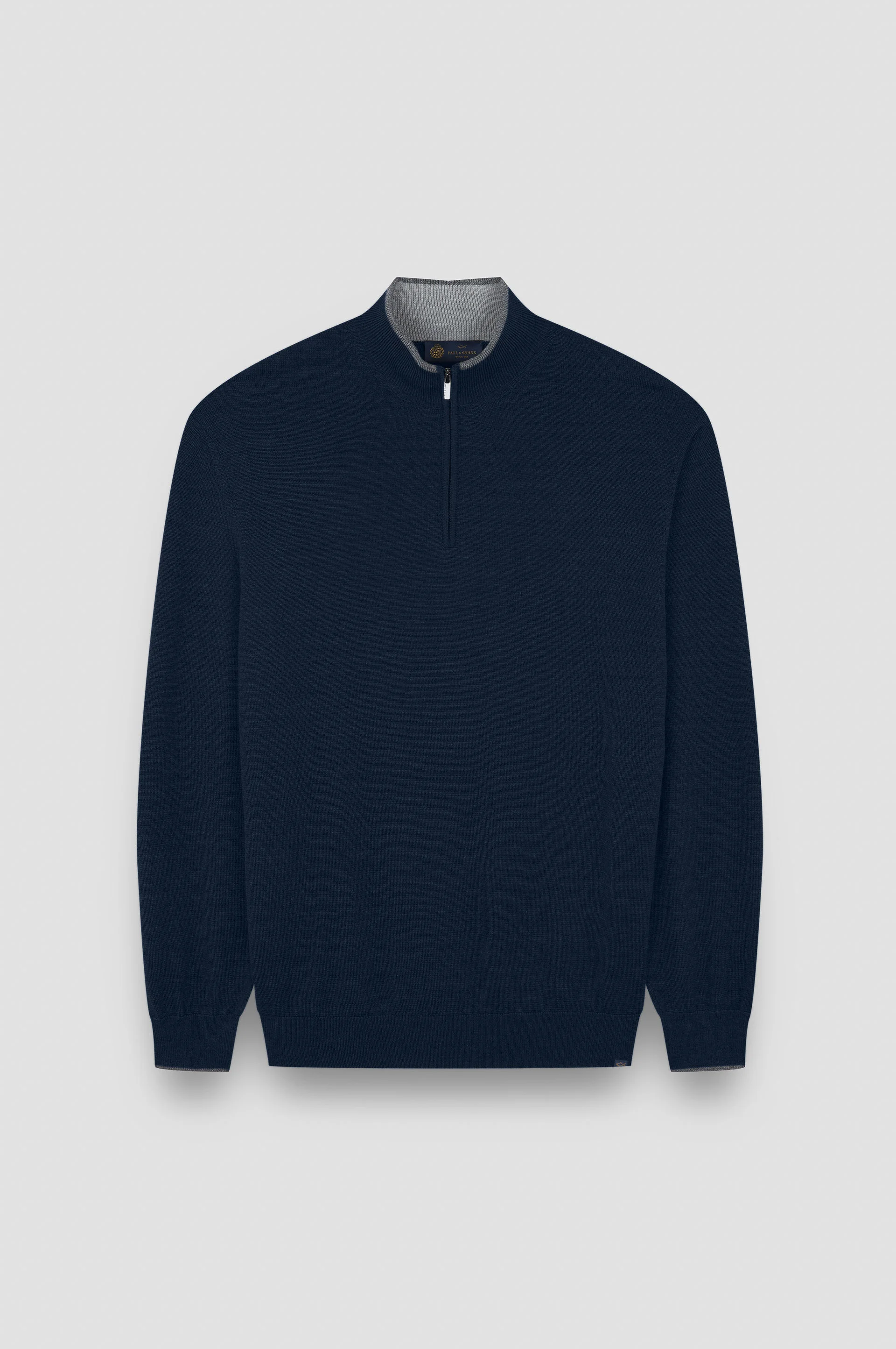 Luxurious materials, refined silhouettes and meticulous attention to detail: the ultimate embodiment of Paul & Shark's effortless elegance. Elevate your everyday wardrobe with the exclusive elegance of this sophisticated garment. This high-neck jumper is knitted from a blend of wool and silk with a tactile chunky stitch: super-soft and cosy yet resistant over time too. A half-zip closure ensures optimal versatility, whilst contrast accents add an eye-catching touch. DETAILS Shark label Zip closure Wool and silk half-zip sweater fineness 14 Ribbed collar, cuffs and flounce Knitted jersey Long sleeve Regular Fit Product ID: 15311134 COMPOSITION & CARE Composition: Outside: 70% virgin wool 30% silk