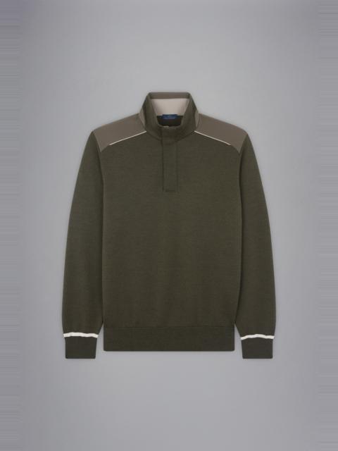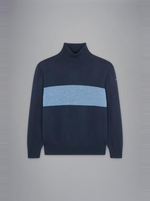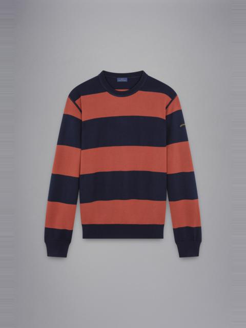 DETAILS Moon badge Crewneck sweater in gauge 14 wool with stiching bold Ribbed collar, cuffs and flounce Interior striped pattern on the neck Knitted jersey Product ID: 14311013 COMPOSITION & CARE Composition: 100% Virgin Wool