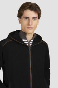 Typhoon Re-4X4 Stretch offers optimal resistance against water and wind, as well as four-way flexibility to naturally mould to your every movement. A sleek silhouette with sophisticated details: this hoodie cements Paul & Shark’s unwavering commitment to delivering exceptional quality. Crafted from cotton with our innovative X-Soft treatment for an even more luxurious feel against the skin, this garment is reinforced with Typhoon Re-4X4 Stretch inserts where you need it most. A two-way zip closure makes it a refined yet practical essential for outdoor activities and layered looks in between seasons. DETAILS Shark label Hood Zip closure Full zip sweatshirt in cotton and lyocell with Typhoon® 4x4 stretch yoke and suede inserts Side pockets Long sleeve Regular Fit Product ID: 15311806 COMPOSITION & CARE Composition: Outer: 46% cotton, 47% lyocell, 7% elastane - Yoke + Inserts: 88% polyester, 12% elastane - Fabric inserts: 79% polyester, 21% polyurethane