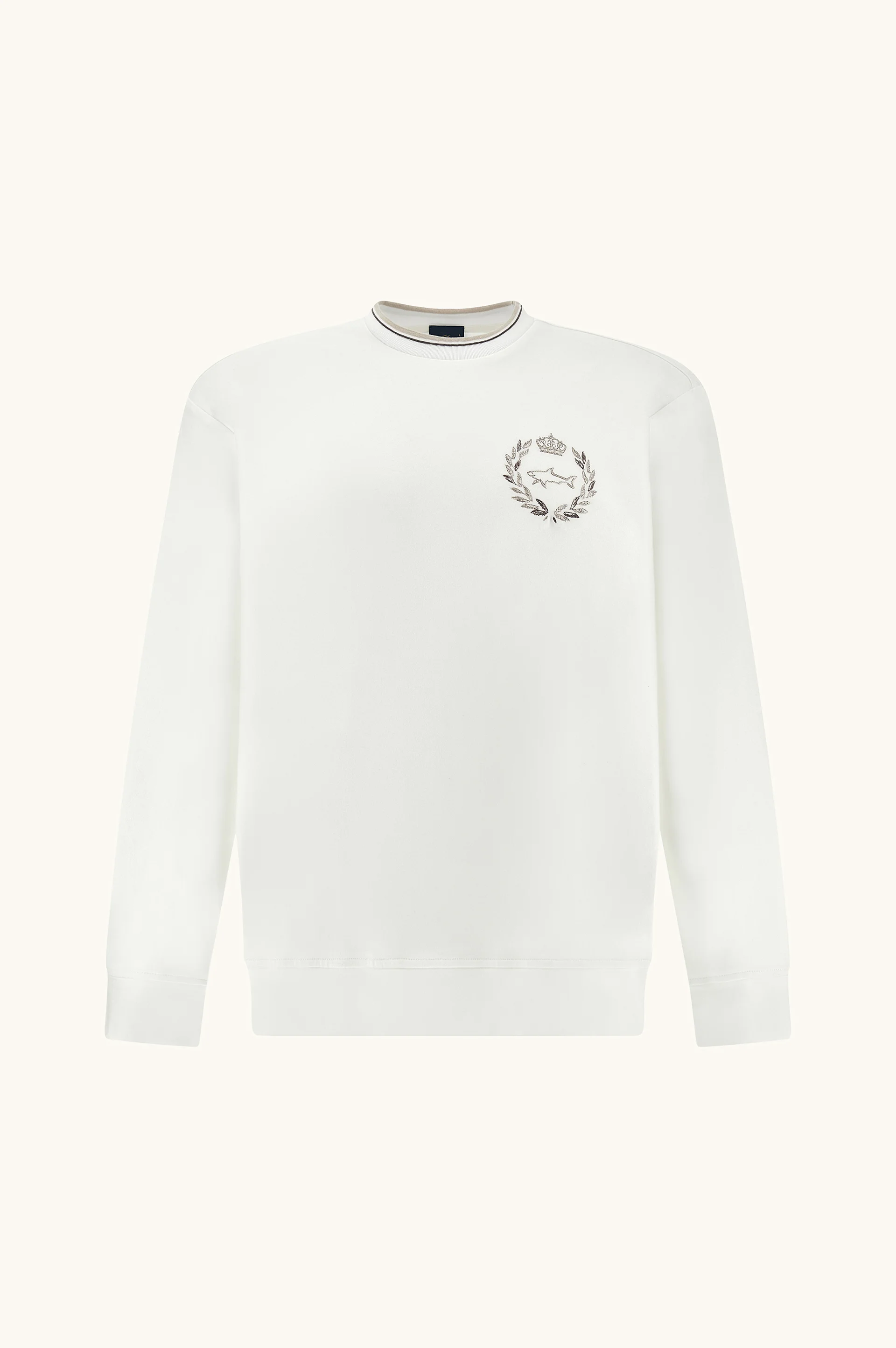 X-Soft is an exclusive treatment developed by Paul & Shark to bring out every garment's softest side. Nautical heritage takes centre stage in this crew neck sweatshirt, where a relaxed attitude meets Paul & Shark’s pursuit of comfort and excellence. The chest detail, finished with a heraldic-style embroidered Paul & Shark logo, nods to retro sportswear codes, while the X-Soft fabric enhances the texture with exceptional softness. A staple for the spring and summer seasons, it pairs effortlessly with denim for casual looks or with shorts for a refined quiet-luxury edge. DETAILS Sweatshirt in cotton and nylon Ribbed collar, cuffs and flounce Long sleeve Regular Fit The model is 189 cm tall and wears size L Product ID: 26411839 COMPOSITION & CARE Composition: Outside: 46% cotton 47% lyocell 7% spandex