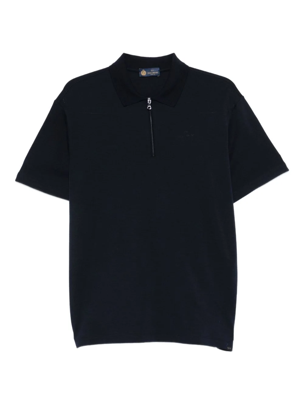 zip-neck polo shirt Highlights - Navy blue - Short sleeves - Zip fastening - Polo collar - Embroidered logo Imported Composition Fabric 100% Washing instructions Read Manufacturer Guidelines