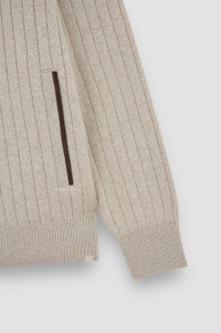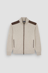 Timeless elegance meets versatile style for an effortless everyday look. This cardigan features a vertical ribbed construction to bring depth and dimension to its sleek silhouette, knitted from a refined blend of wool and cashmere. Pockets and a two-way zip closure ensure maximum convenience, while suede inserts bring out its exclusive allure. DETAILS Shark label Two-way zip closure High-neck cardigan with suede details in wool and cashmere fineness 8 Ribbed collar, cuffs and flounce Side pockets with zip Gerippter Pullover Long sleeve Regular Fit Product ID: 15311210 COMPOSITION & CARE Composition: Outer: 45% Wool 25% cashmere 30% Viscose - Inserts: Genuine Goat Leather - Contains non-textile parts of animal origin