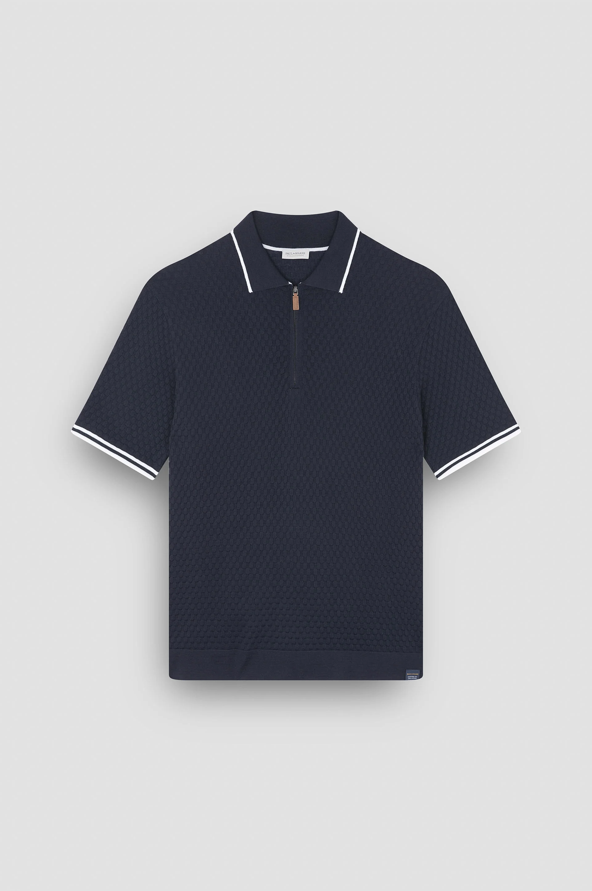 The pieces from the Riviera collection embrace those peaceful moments by the sea in winter when the waves gently crash against the shore, and the fresh air invites you to seek refuge in a minimal-chic style. Elevate your everyday wardrobe with the exclusive elegance of this sophisticated polo shirt, made from a refined blend of wool and cashmere with an elegant chunky knit. A zip closure with leather pull is both easy and refined, while striped detailing on the collar and sleeves gives a subtle nod to the sailing world. DETAILS Shark label Zip closure Polo in wool and cashmere fineness 18 with contrast trims on collar and sleeves Ribbed collar, cuffs and flounce Knitted jersey Short sleeve Regular Fit Product ID: 15311124 COMPOSITION & CARE Composition: Outer: 90% Virgin Wool 10% cashmere