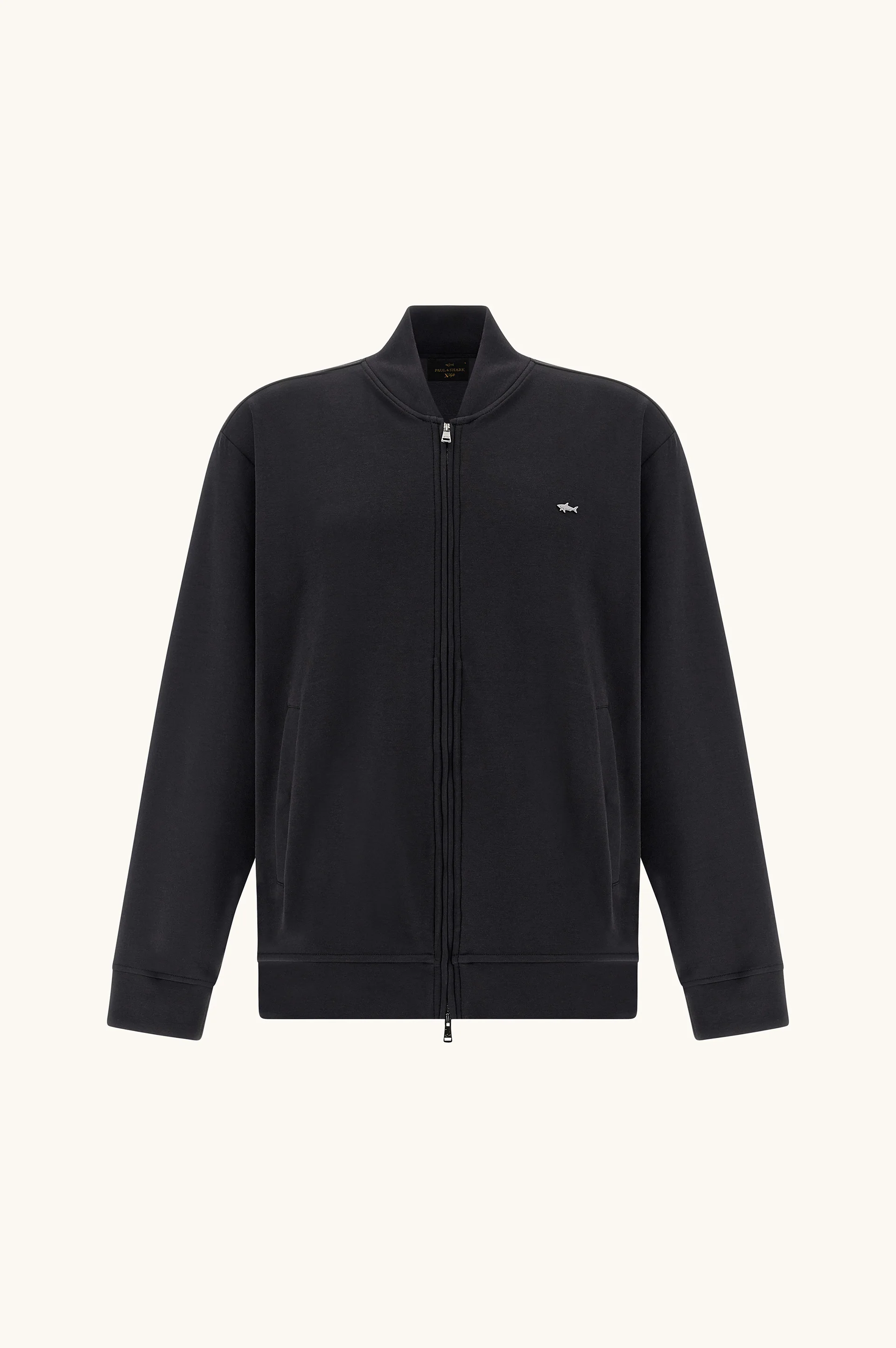 A rounded collar jacket, a defining icon of the nautical wardrobe, meets contemporary style and performance in this zip-up sweatshirt. A true expression of quiet luxury with a strong character, it pairs effortlessly with sporty outfits while elevating the look with understated elegance and formal precision. Crafted in Active Fleece cotton, it ensures exceptional comfort, while buttoned pockets enhance everyday practicality. DETAILS Metal Shark Two-way zip closure Sweatshirt in cotton and nylon Buttoned pockets Long sleeve Regular Fit The model is 188 cm tall and wears size L Product ID: 26411814 COMPOSITION & CARE Composition: Outside: 62% cotton 33% nylon 5% spandex