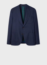 Made in Portugal from our 100% wool suit to travel in cloth, this dark blue marl blazer features water repellent, natural stretch and crease recovery properties. Unlined for a lightweight and relaxed tailored finish, this blazer comes complete with fully functioning cuffs with 'Artist Stripe' tape trim - for a signature pop of colour. The Fit - Tailored-Fit Product Code: M1R-2358-V00001-45B