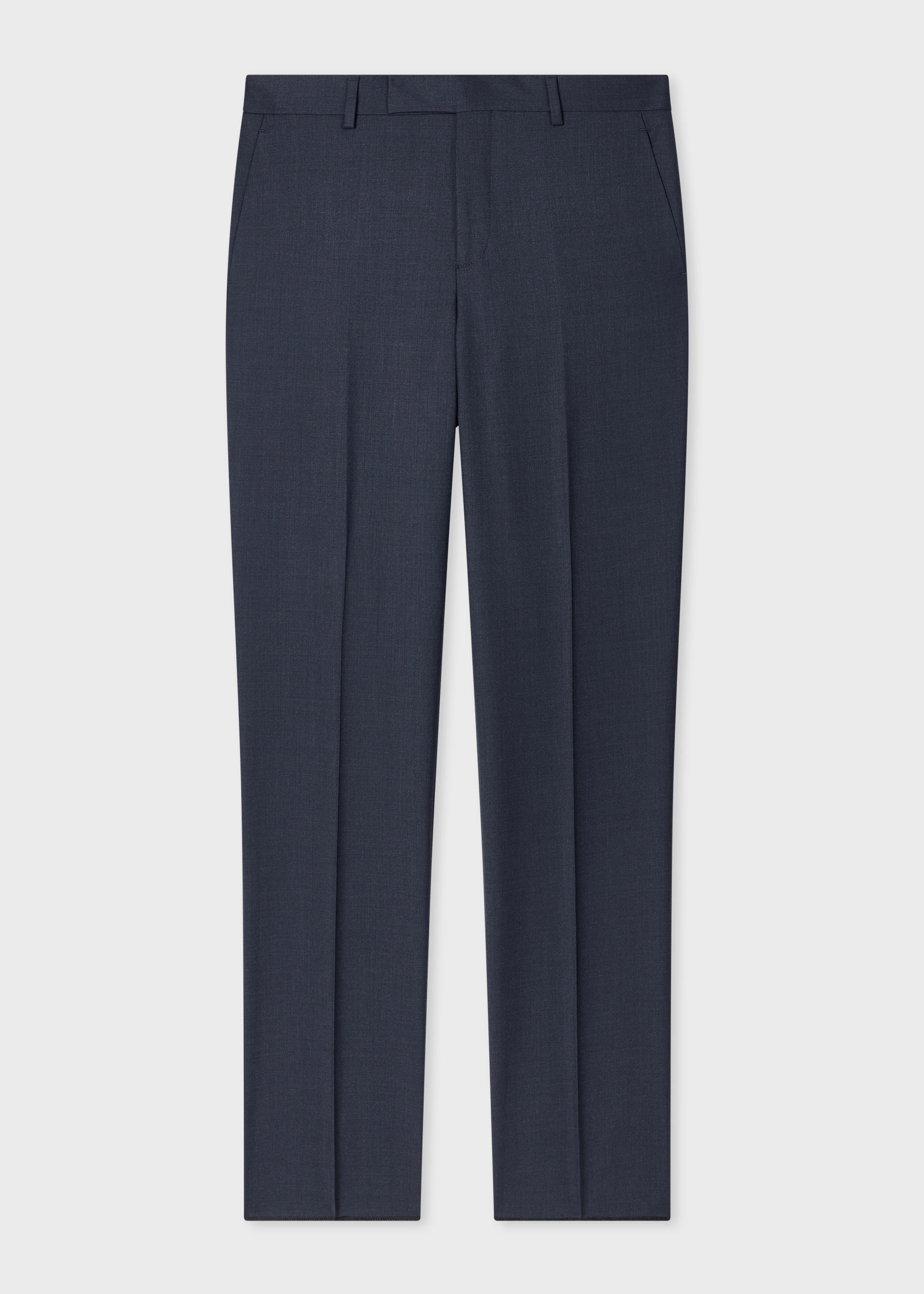 Made in Italy from our 100% wool suit to travel in cloth, these dark blue marl trousers feature water repellent, natural stretch and crease recovery properties. Cut for a tapered-fit, these trousers are finished with an internal rubber grip on the waistband, to keep shirting secure. The Fit - Tapered-Fit a low rise trouser, tapered through the knee and calf towards a narrow hem Product Code: M1R-925N-V00001-45B