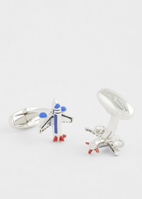 Add a playful touch to your outfit with these silver 'Aeroplane' cufflinks. Featuring polished silver T-bar fastenings and presented in a black gift-box, these cufflinks are the perfect gift for travel enthusiasts. 70% Copper, 30% Zinc with 100% Enamel plated Product Code: M1A-CUFF-TAERO-82