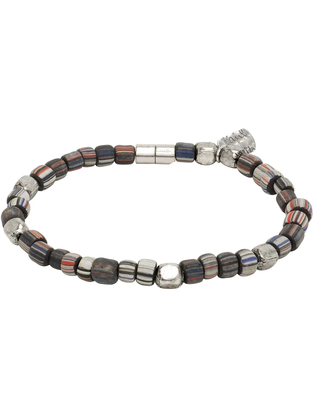 Beaded stone bracelet striped in multicolor. · Antiqued silver-tone copper beads at length · Logo plaque at back face · Magnetic fastening · L7.5" Supplier color: Multicolour Stone, copper. Made in Japan 261260M142003