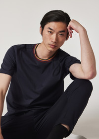 Cut from 100% organically grown cotton, this navy T-shirt features our classic 'Artist Stripe' on the collar - for a signature flash of colour. 100% Organically Grown Cotton Machine washable Made in Portugal Product Code: M1R-697PS-H00084-49