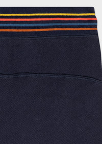 Cut from a cotton jersey, these relaxed navy lounge pants feature an elasticated waist for comfort, with an 'Artist Stripe' waistband. Designed for a comfortable fit, this loungewear essential will seamlessly elevate your everyday wardrobe. Finished with ribbed cuffs and a Paul Smith signature logo tab. 100% Cotton Machine washable Product Code: M1A-373M-AU807-48