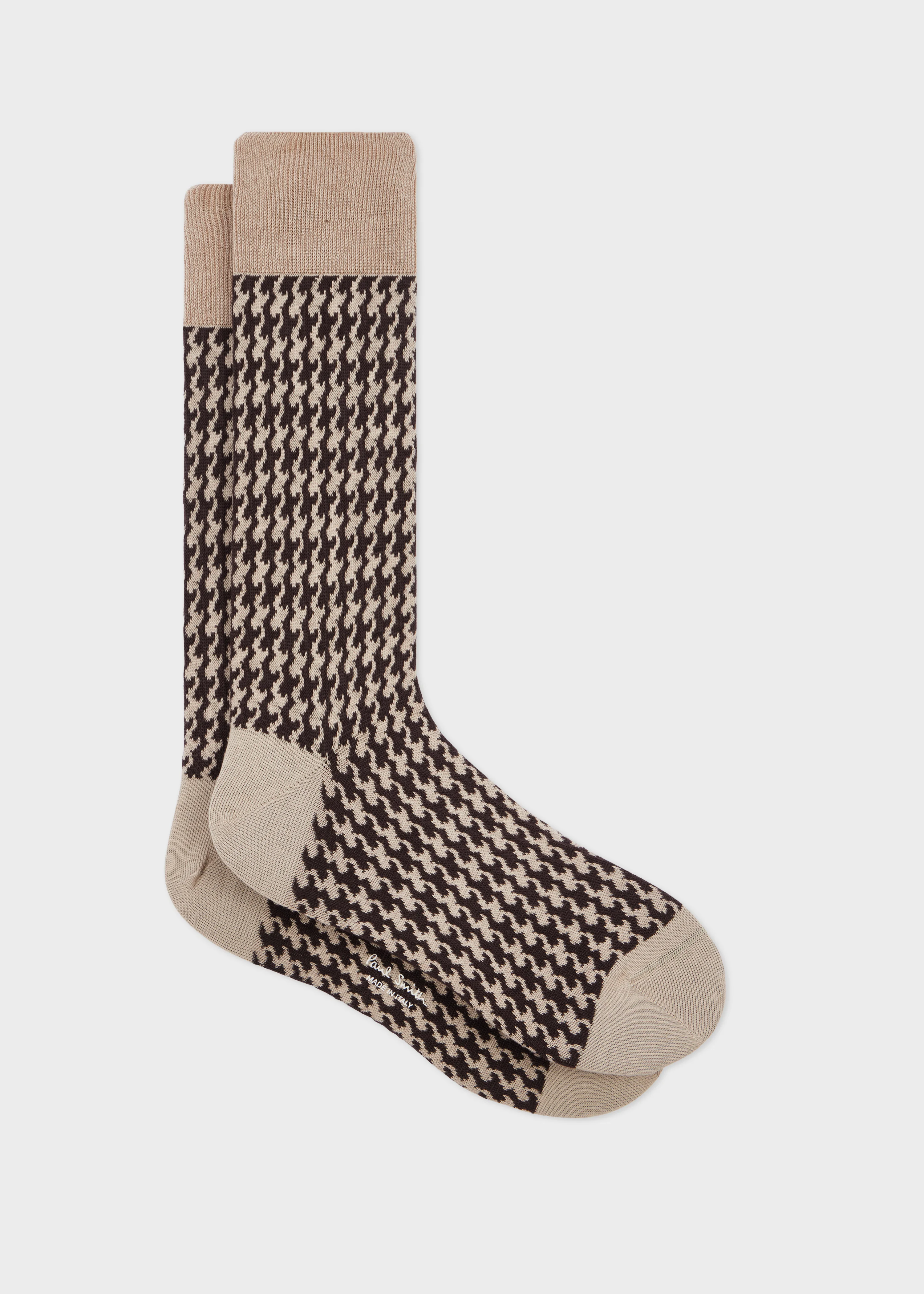 Made in Italy from a soft cotton-blend, these beige socks feature a houndstooth pattern. Complete with tonal toes, heels and ribbed cuffs for comfort. Product Code: M1A-800MO-T794-62