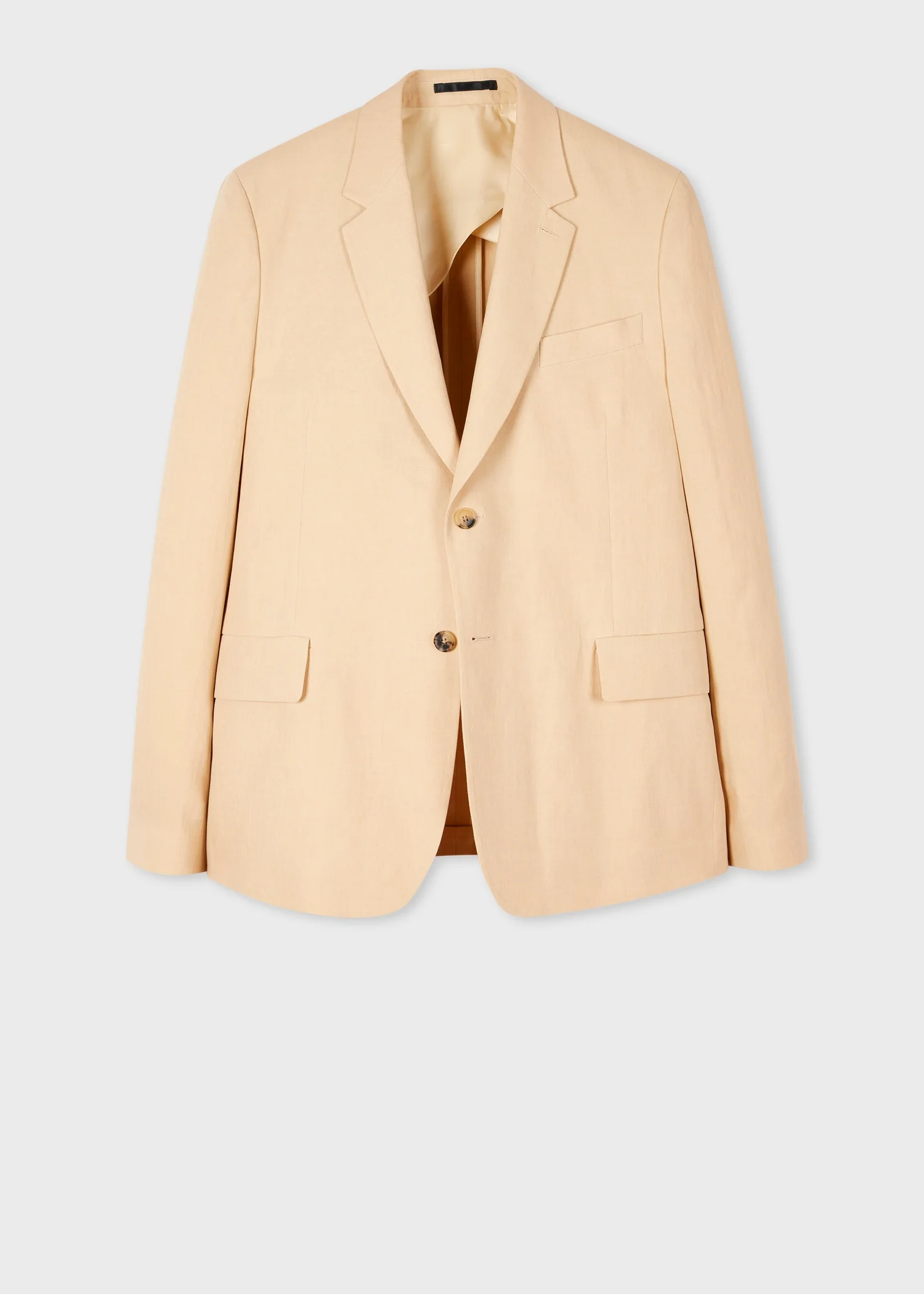 Made in Portugal from 100% linen for a lightweight finish, this beige blazer features a buggy lining for added breathability. Complete with contrast buttons, and flap pockets with ivory lining, this blazer is finished with contrast internal binding. 100% Linen Dry clean only Made in Portugal The Fit Tailored-Fit Product Code: M1R-2301-M01427-07