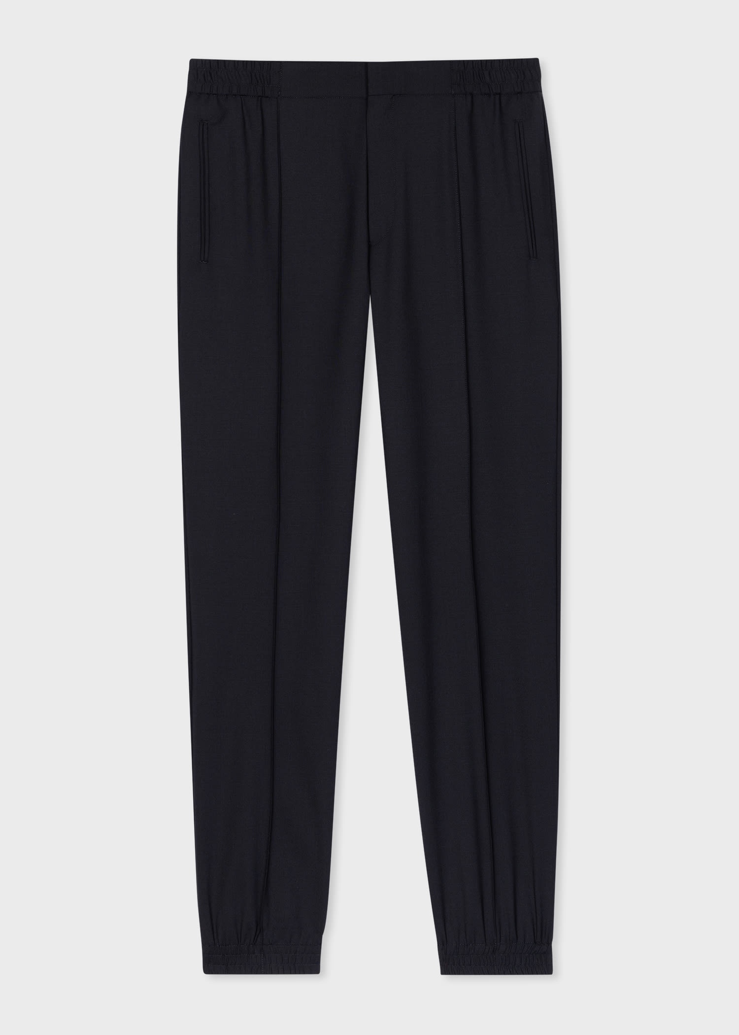 Made in Portugal from a non mulesed bi-stretch wool-blend for added comfort, these dark navy trousers feature a hybrid waistband with stretch sides and hook-and-eye fastening for a clean finish. Complete with cuffed hems and side-entry jetted pockets. 98% Wool, 2% Elastane Dry clean only Made in Portugal Product Code: M1R-758Y-M02212-49