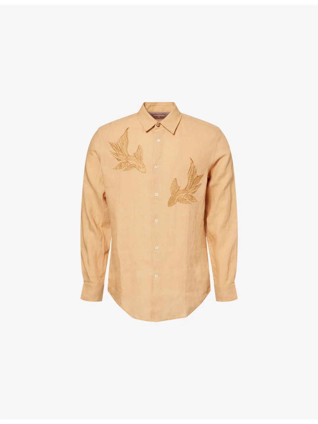 PRODUCT DETAILS - Paul Smith linen shirt - 100% linen - Button fastening - Relaxed fit, classic collar, long sleeves, buttoned cuffs, embroidered bird motifs at chest, curved hem - Hand wash cold - Size medium: length 31in / 78.5cm, chest 46in / 117cm - Model is 6ft 2in/1.88m and wears a size medium - Lightweight, non-stretch Ref: R04574055