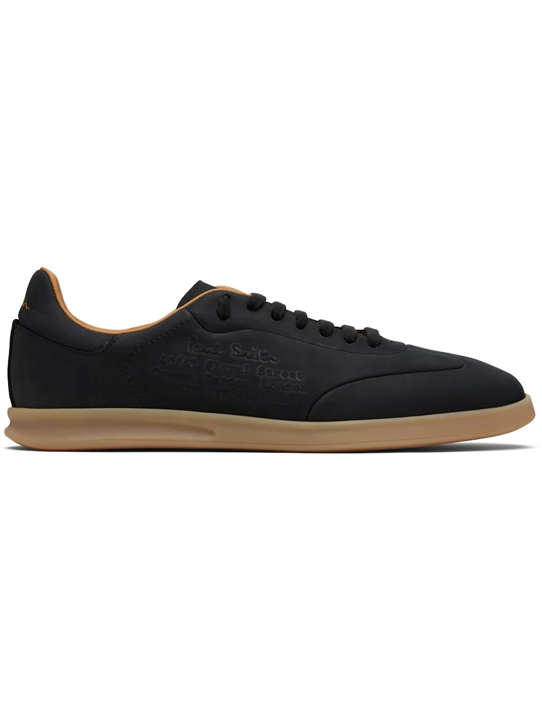 Low-top suede sneakers. · Lace-up closure · Padded collar · Logo stamp at heel tab · Logo and text embossed at outer side · Suede and buffed leather lining · Treaded rubber sole Supplier color: Black Upper: leather. Sole: rubber. Made in Italy 252260M237014